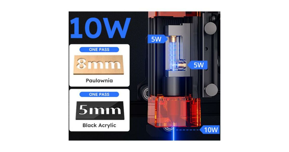 - Vágás: Akár 8 mm vastag fa és akril is vágható vele (több menetben).