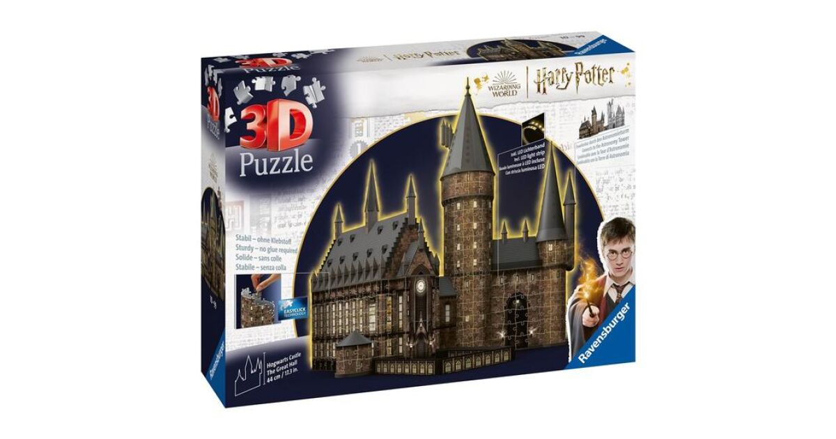 Ez a különleges Ravensburger 3D puzzle a Harry Potter világából egyedi dísze lehet a szobádnak! Építsd meg a varázslatos Roxfort kastélyt, mely világít is!