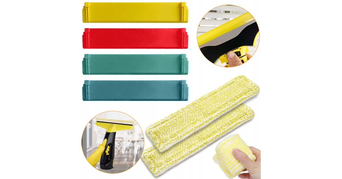 Ezt a terméket így is ismerheted: Zestaw do myjek Karcher WV1/WV2/WV5 | 2 mikrofibry + 4 gumowe listwy 28 cm | Zamiennik | Do szyb, luster i płytek