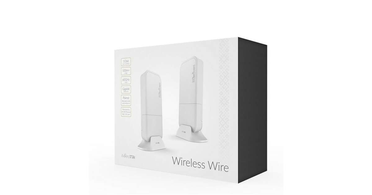 Ez a forradalmian új megoldás száloptikai sebességet és minőséget kínál töredék áráért! A MikroTik Wireless Wire két kompakt eszközzel helyettesíti a Gigabit Ethernet kábelt, 60 GHz-es vezeték nélküli kapcsolaton keresztül biztosítva a kapcsolatot.