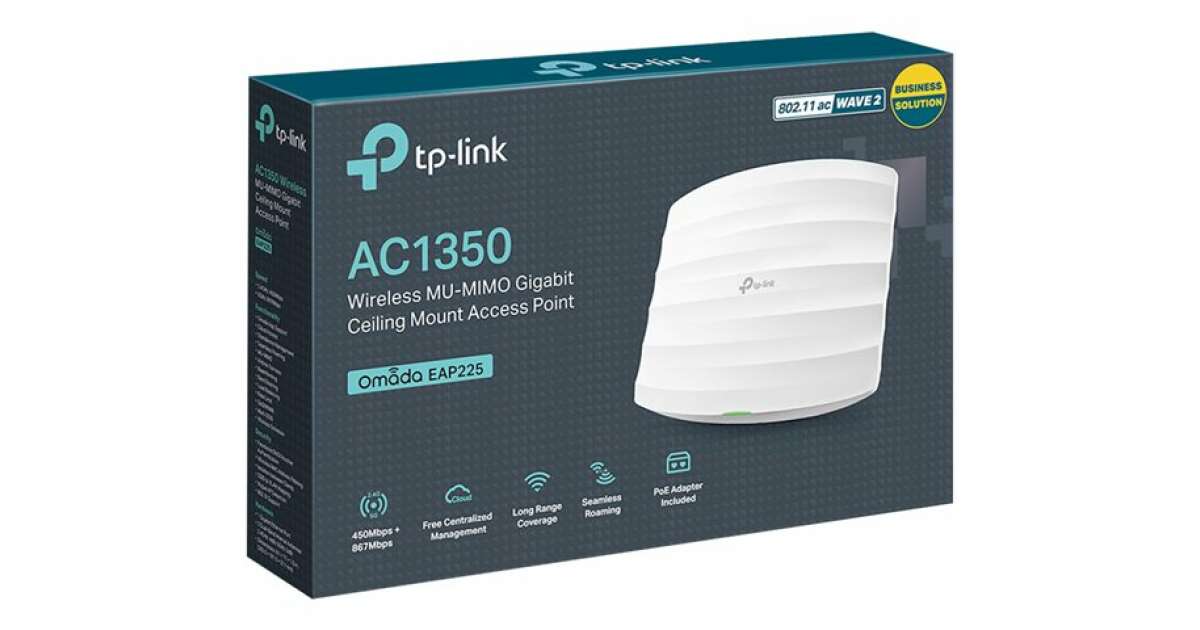 Ezt a terméket így is ismerheted: TP-Link Access Point WiFi AC1350 - Omada EAP225 (450Mbps 2,4GHz + 867Mbps 5GHz; 1000Mbps; af PoE; BSA; 4x4dBi antenna)