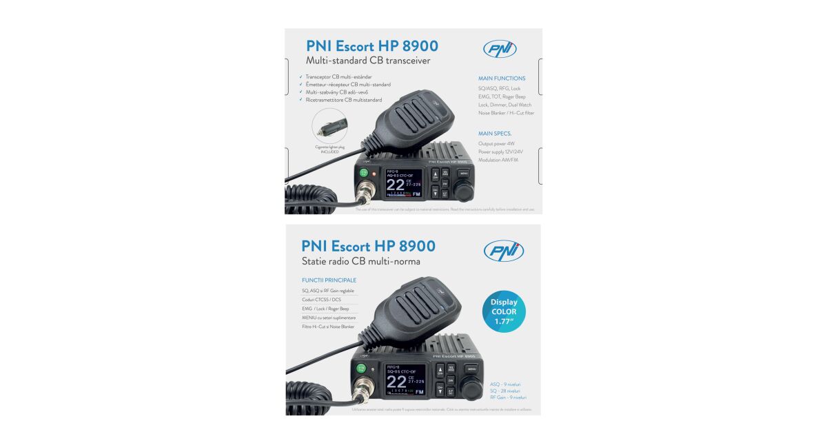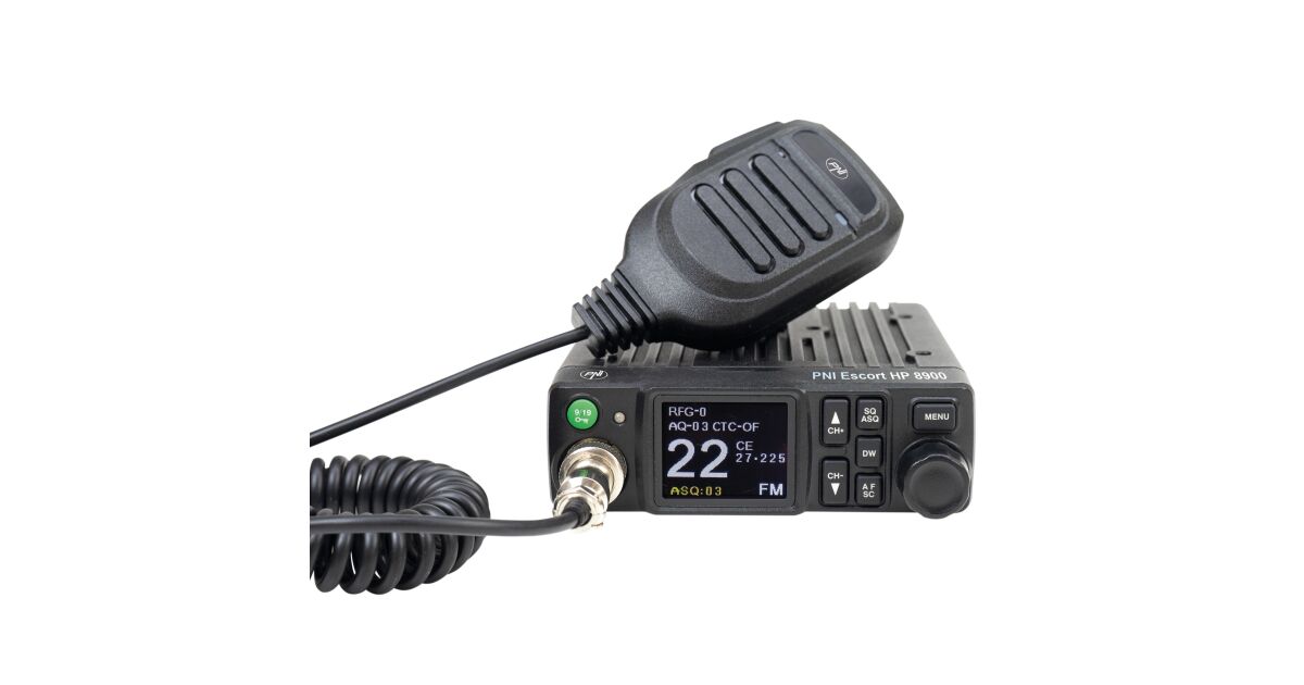 CB PNI Escort HP 8900 ASQ rádióállomás csomag, 12-24V és PNI Extra 48 CB antenna mágneses talppal, 12V/24V tápegység, RF Gain, Roger Beep, CTCSS-DCS, Dual Watch