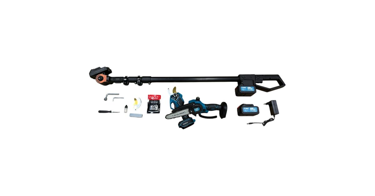Flinke Proffeszionális 14 Részes Ágvágó szett, Láncfűrész, Metszőolló, 240cm teleszkópos hosszabítókar + 2db 21V akku