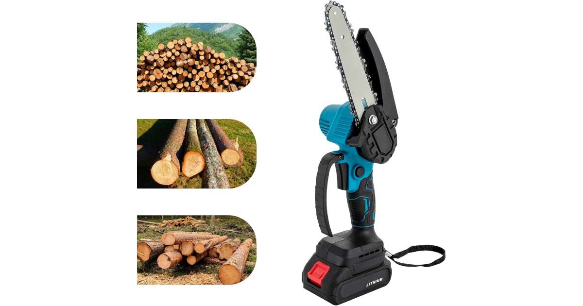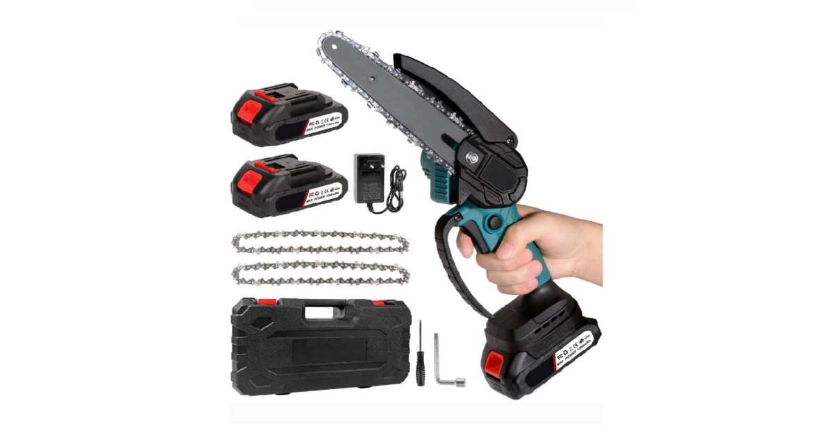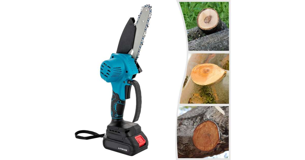 Mini akkumulátoros elektromos láncfűrész 2 lánccal, 2 1300mAh akkumulátorral, 4"-os pengével és 300W-os teljesítménnyel. vélemények