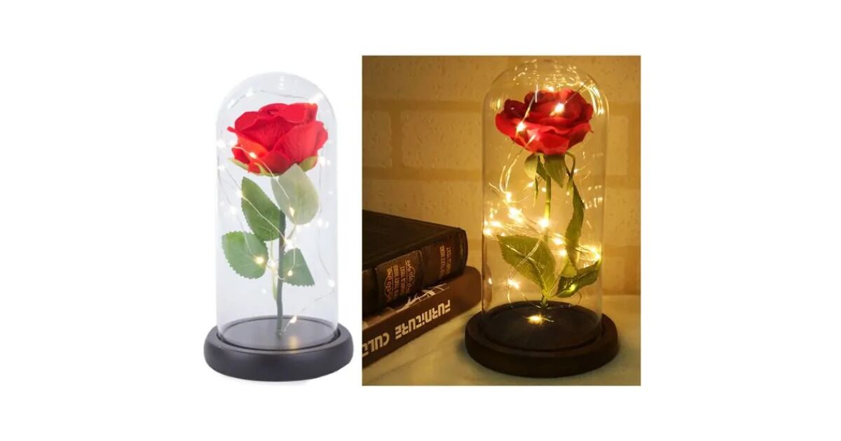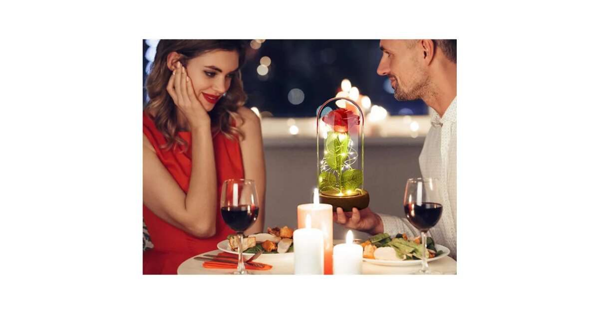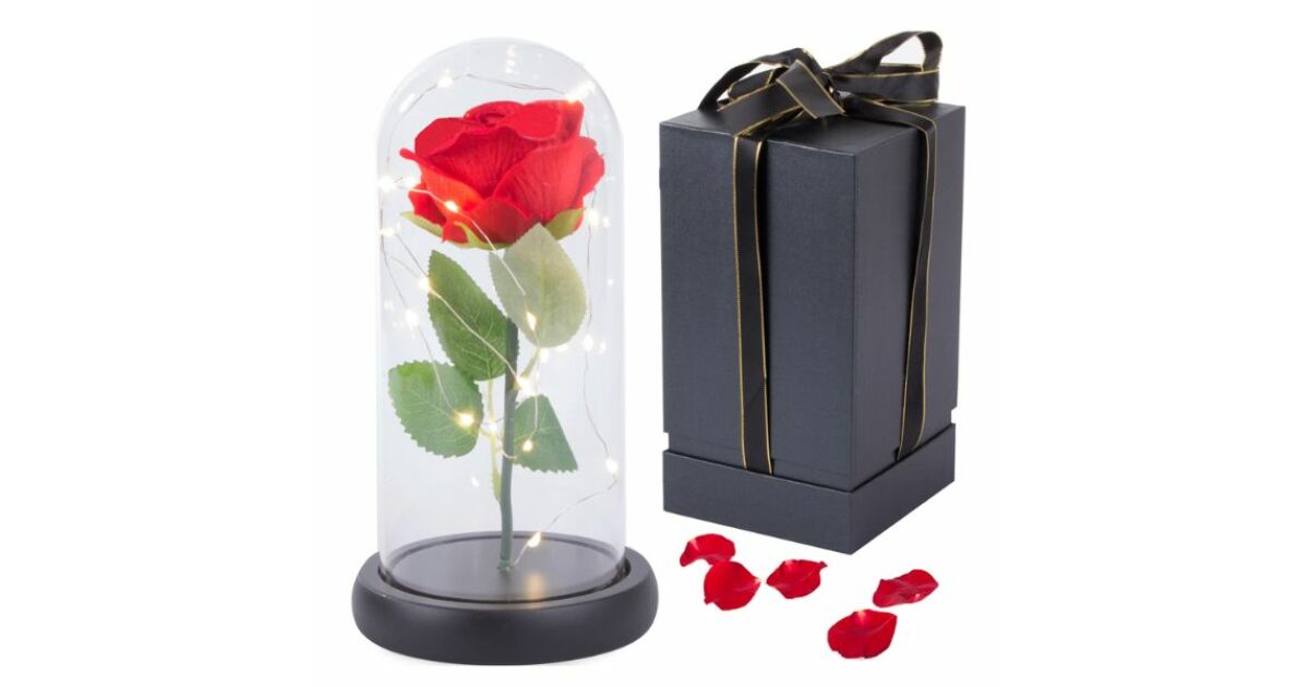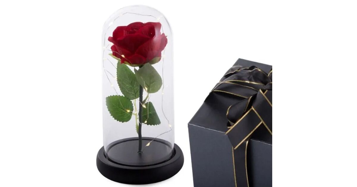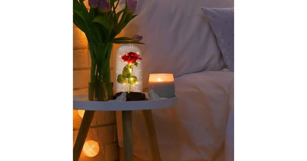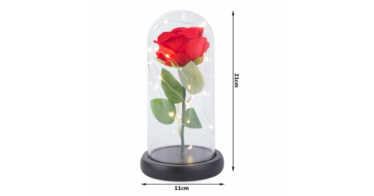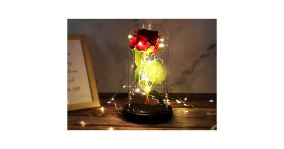 - Védelem: Az üveg védi a rózsát a portól és sérülésektől.