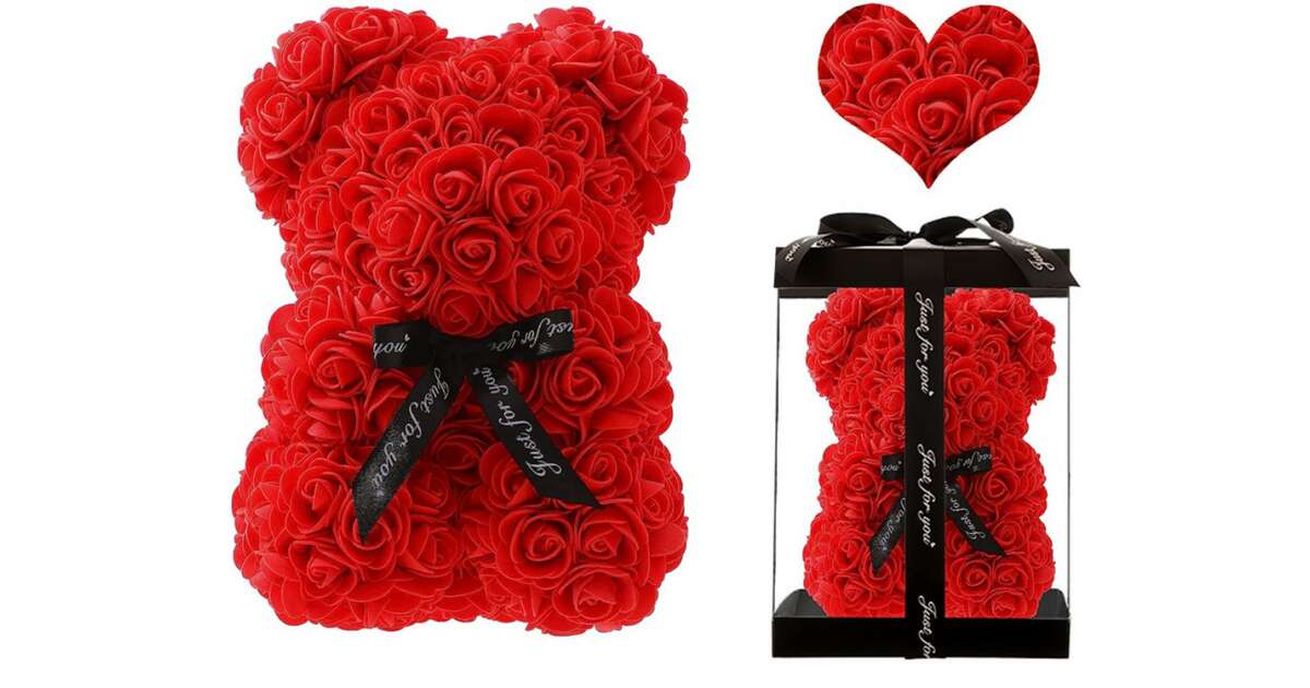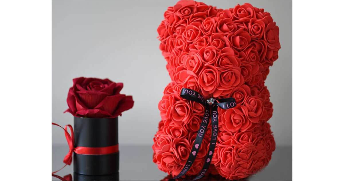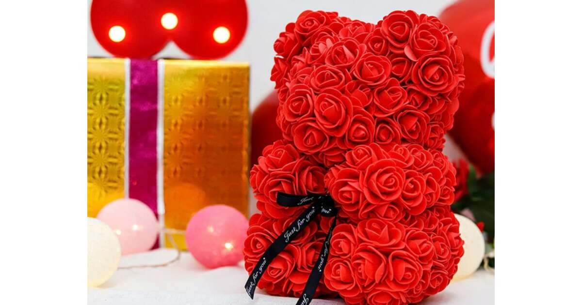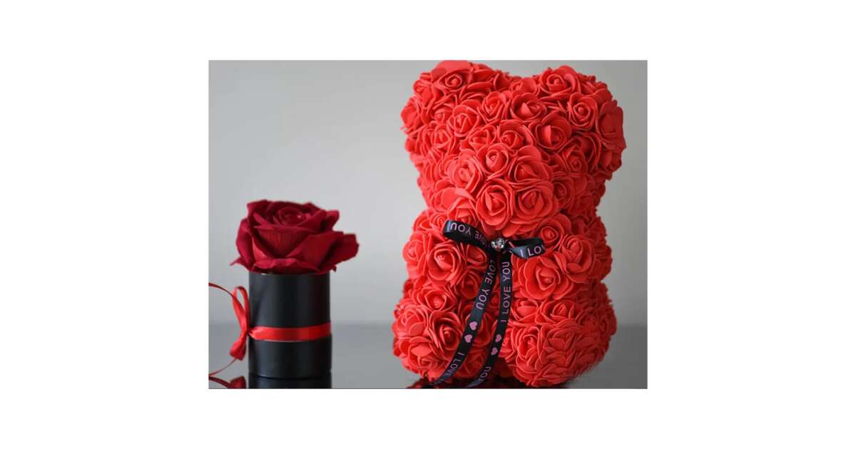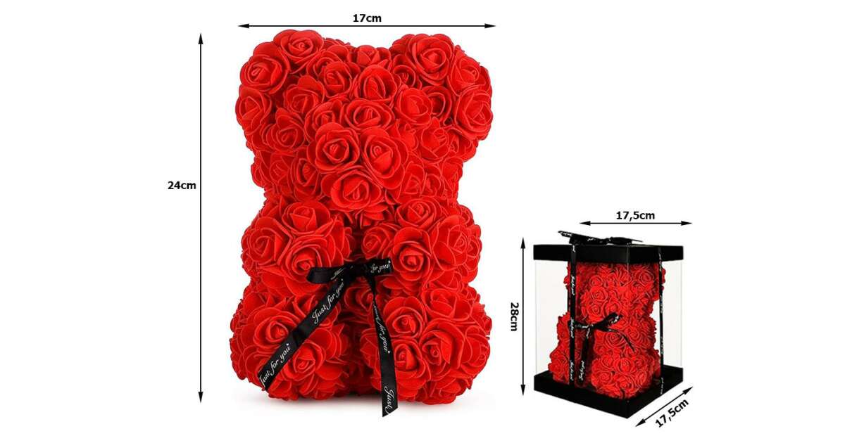 Ez a gyönyörű, piros rózsaszirmokból készült mackó egy tökéletes ajándék szerelmeseknek, barátoknak, vagy családtagoknak. Kiváló minőségű anyagokból készült, puha tapintású és tartós. A dobozban való kiszerelés elegáns megjelenést biztosít, és tökéletes ajándéknak teszi.