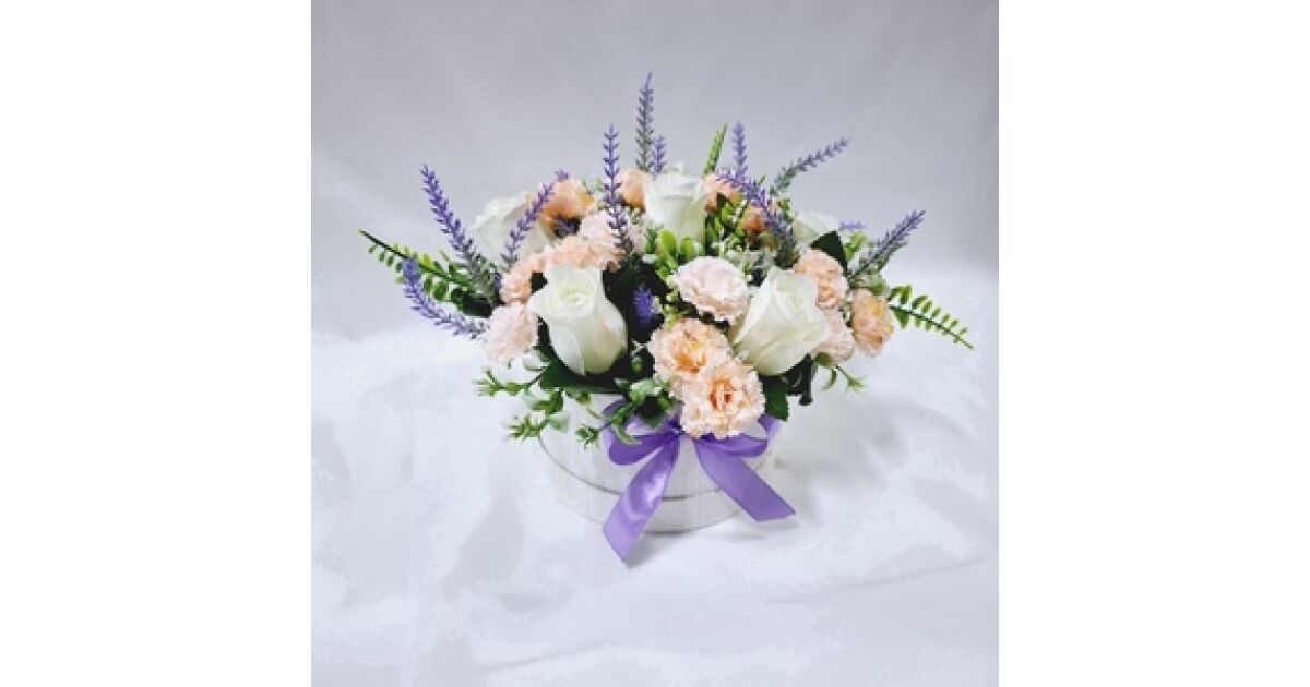 Kézzel Készített Virágdoboz Rózsa, Szegfű és Levendula Kompozícióval 🌸