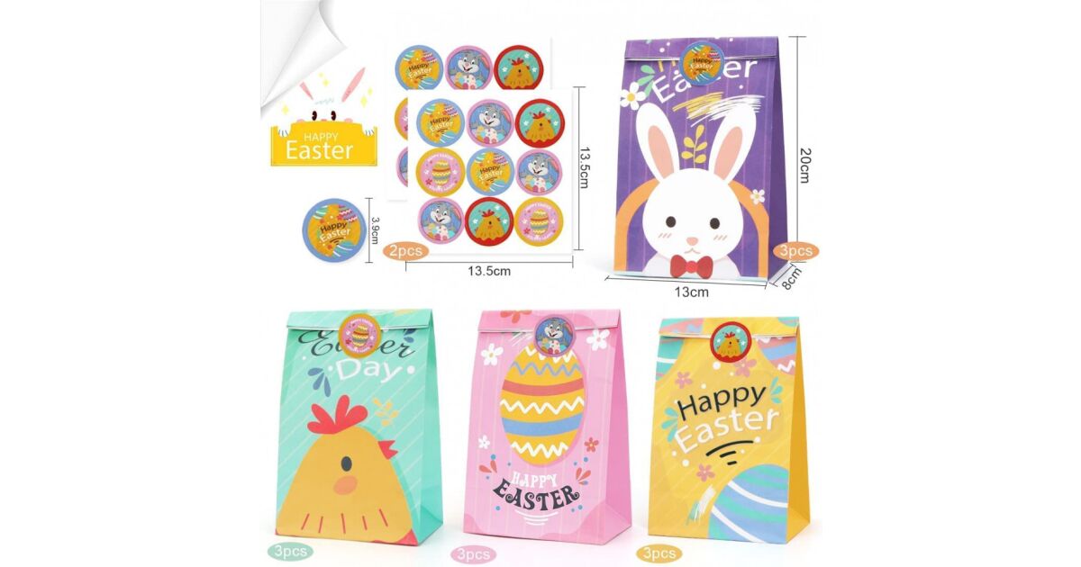 12 darabos húsvéti ajándéktasak szett DHYDQX matricákkal, papír, többszínű, 20 x 8 x 13 cm leírása