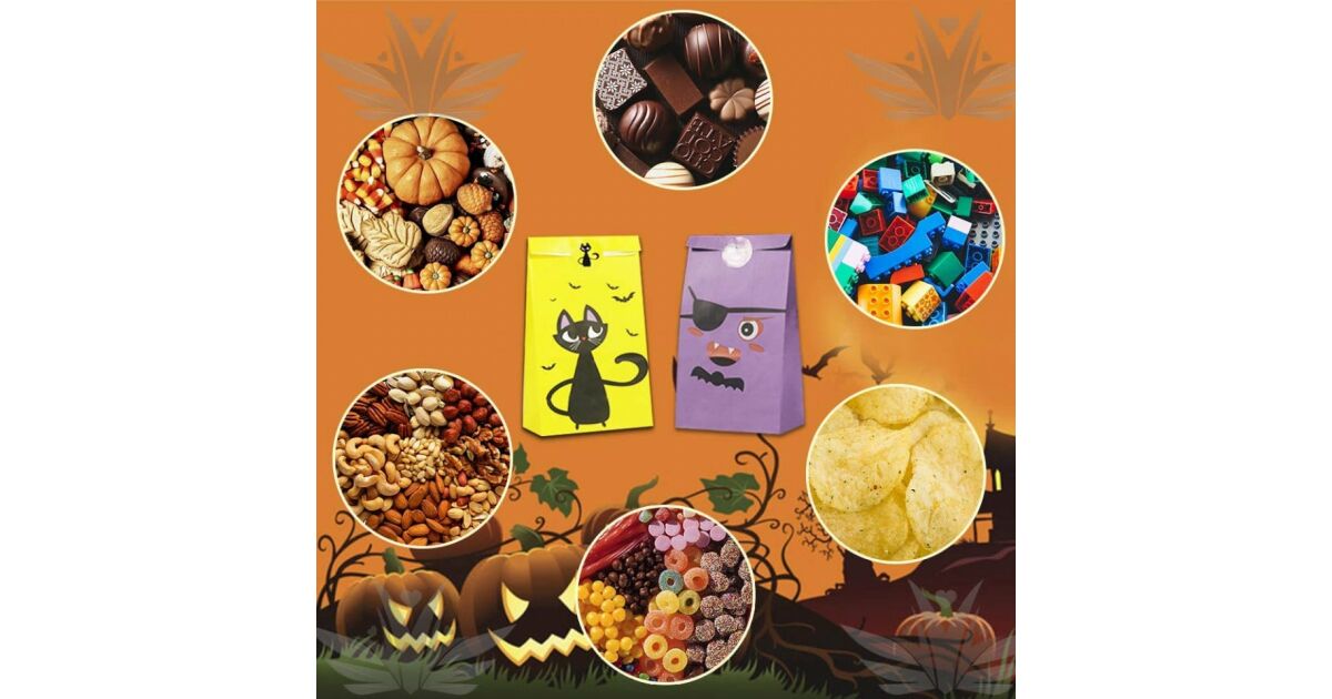48 darabos papír ajándéktasak szett, tökéletes Halloween partikra! A nagyméretű (23x15x10cm) tasakok elegendő helyet biztosítanak édességek, apró játékok vagy egyéb ajándékok számára. Minden tasak aranyos, Halloween témájú dizájnnal rendelkezik, és matricákat is tartalmaz a személyre szabáshoz.