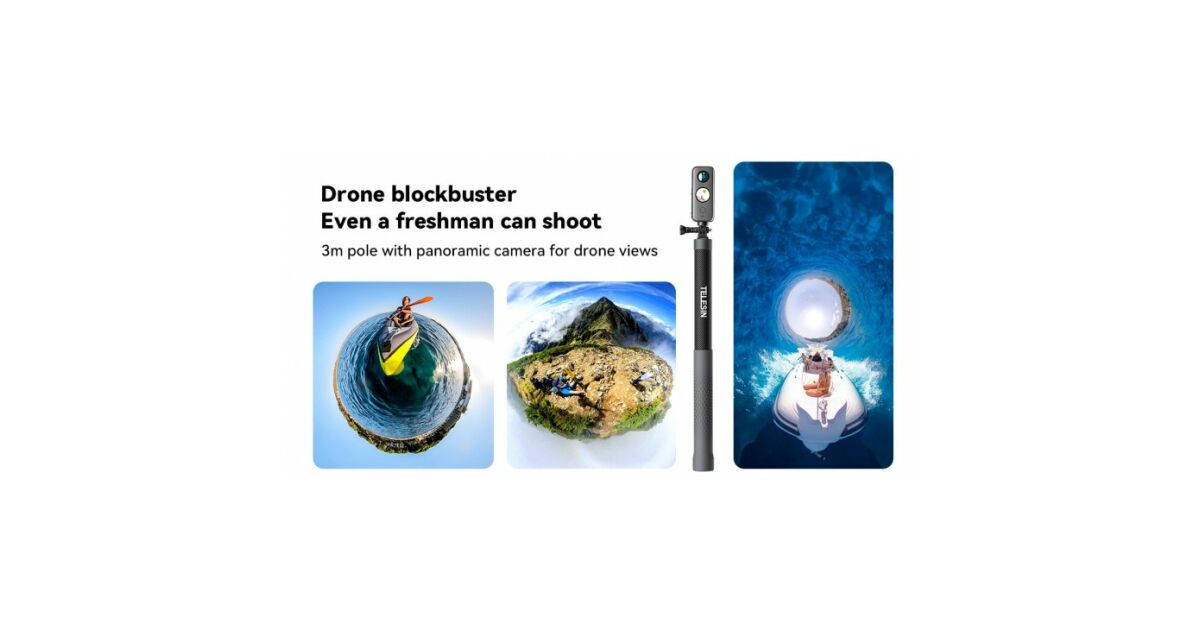 Készíts lélegzetelállító felvételeket a Telesin 3 méteres karbon szelfibottal! Könnyű, erős és kompatibilis a legnépszerűbb akciókamerákkal.