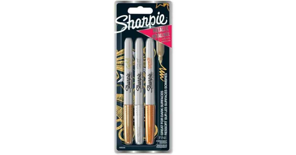 Ez a Sharpie Metallic alkoholos filctoll készlet 3 darab, 0.9 mm-es hegyű, fémes hatású filctollat tartalmaz. Tökéletes sötét felületekre való rajzoláshoz és íráshoz. ✨