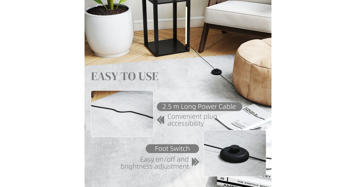 Ezt a terméket így is ismerheted: HOMCOM állólámpa 4 polccal, 3 állítható fényerővel és lábkapcsolóval, 29x29x163 cm, fekete