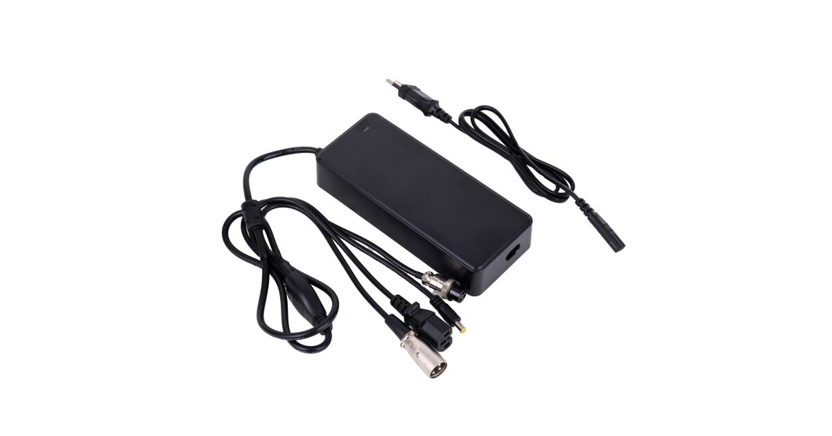 Li-ion töltő 29,4V/2A 4 csatlakozóval elektromos rollerekhez, kerékpárokhoz, hoverboardokhoz, robogókhoz, Fekete leírása