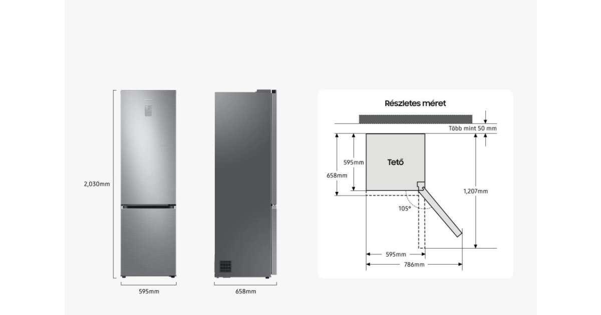 Ezt a terméket így is ismerheted: Samsung RB34C670DSA/EF Alulfagyasztós hűtőszekrény, 344L, M: 185, Wifi AI Energy, Power Cool, No Frost, D energiaosztály, Ezüst