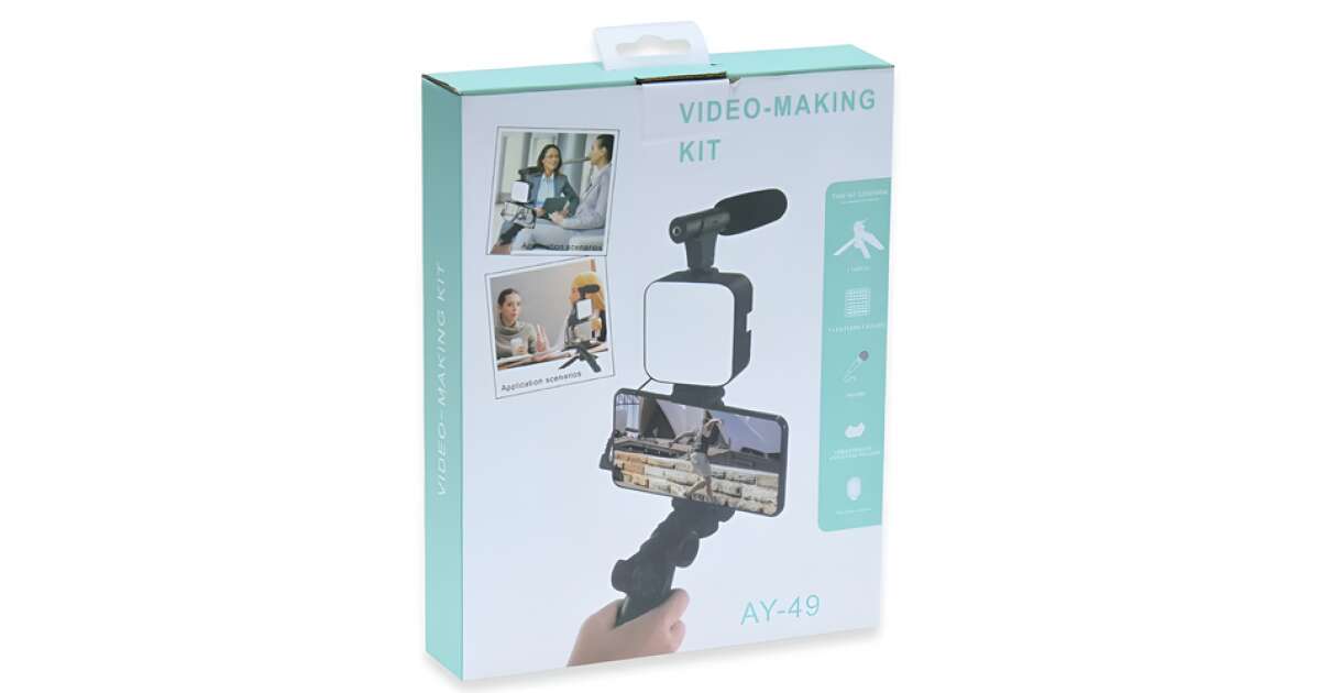 Ezt a terméket így is ismerheted: Vlogger Készlet, Mikrofonnal, LED Világítással És Állvánnyal AY-49