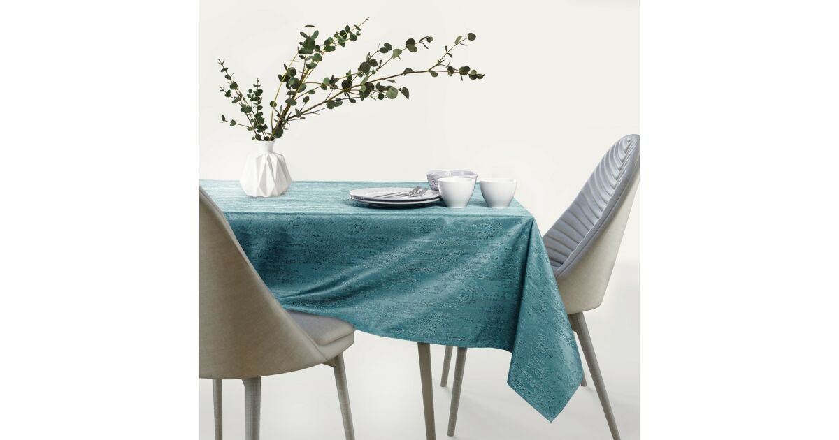 Varázsolja ünnepivé étkezőjét ezzel a gyönyörű, tengerzöld asztalterítővel, mely modern dombornyomásával stílusos megjelenést kölcsönöz.