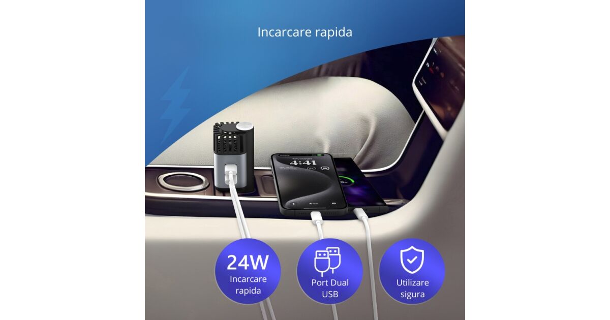 Ezt a terméket így is ismerheted: Purificator Auto, 2 in 1, ProClean, gri, 12.1 cm inaltime si 4.8 cm latime, din aliaj de aluminiu si ABS, este rezistent la zgarieturi si uzura, 2 porturi USB pentru incarcare rapida, elimina mirosurile neplacute