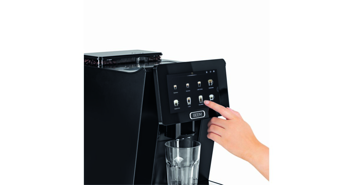BEEM automata eszpresszógép, Profession, 2 literes víztartály, 14 program, 250g kávé kapacitás, 7" TFT LCD érintőképernyő, automatikus leállítás, 600 ml tejtartály, kúpos daráló, öntisztító,