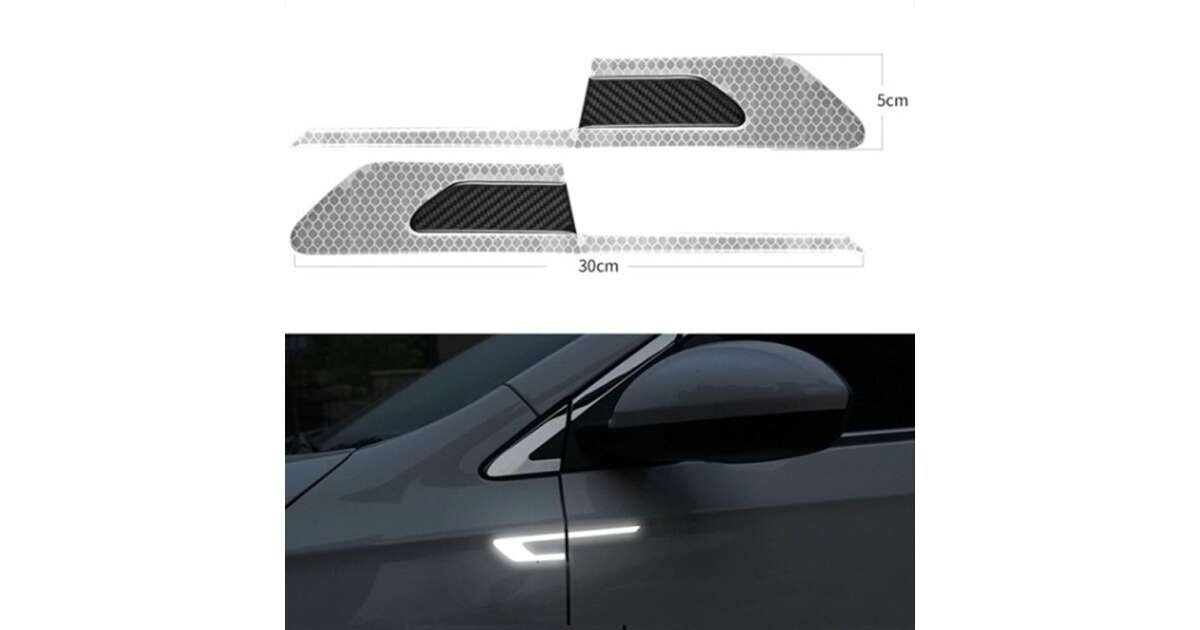 Két darab kiváló minőségű, bumeráng alakú fényvisszaverő matrica, melyek növelik autója láthatóságát, különösen sötétben vagy rossz látási viszonyok között. A matricák elegáns megjelenést kölcsönöznek járművének, köszönhetően a stílusos karbon betétnek.