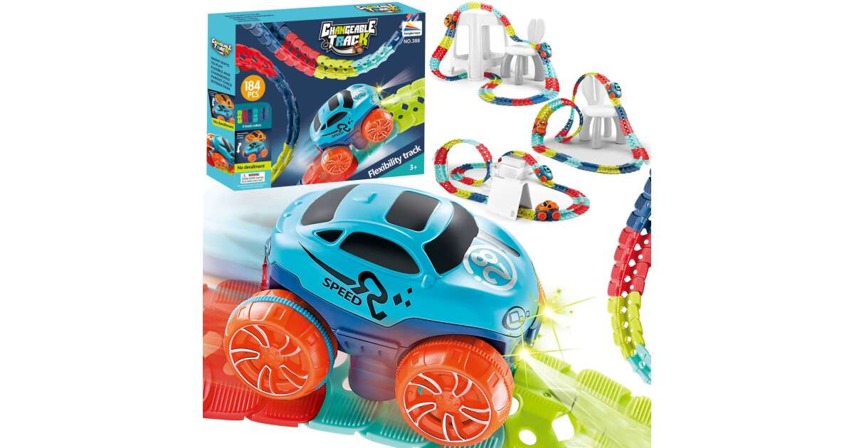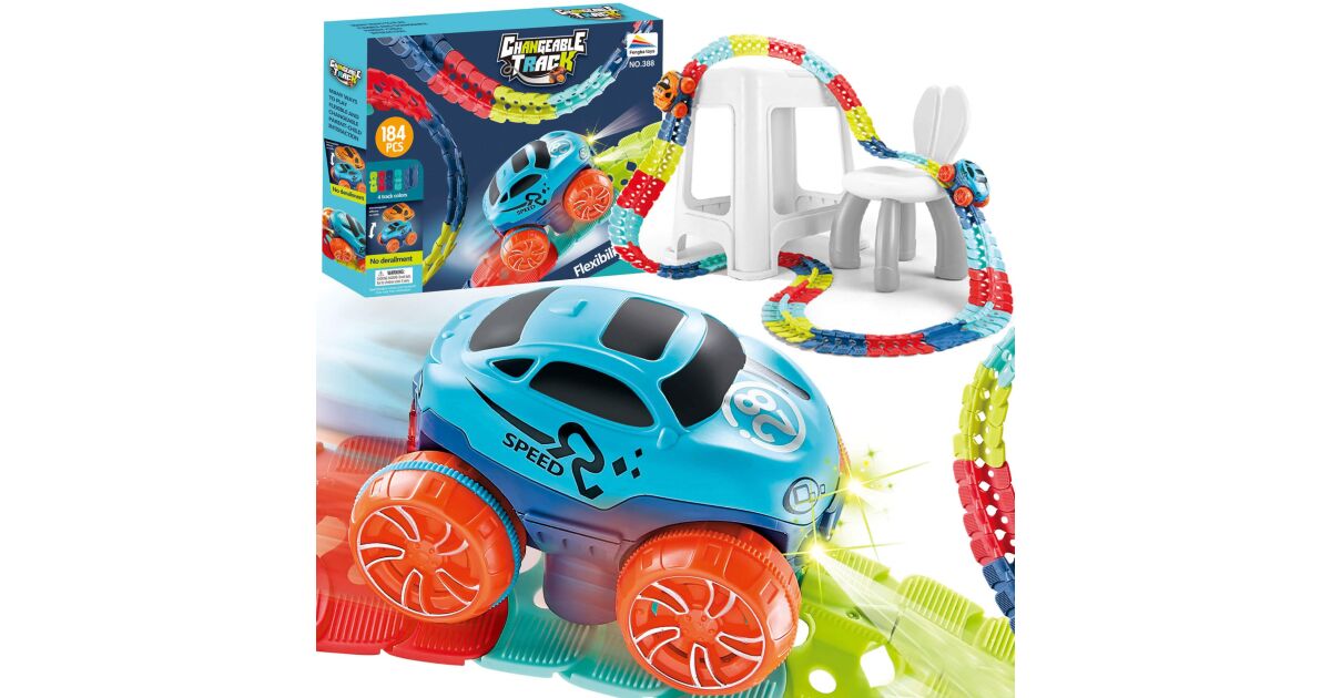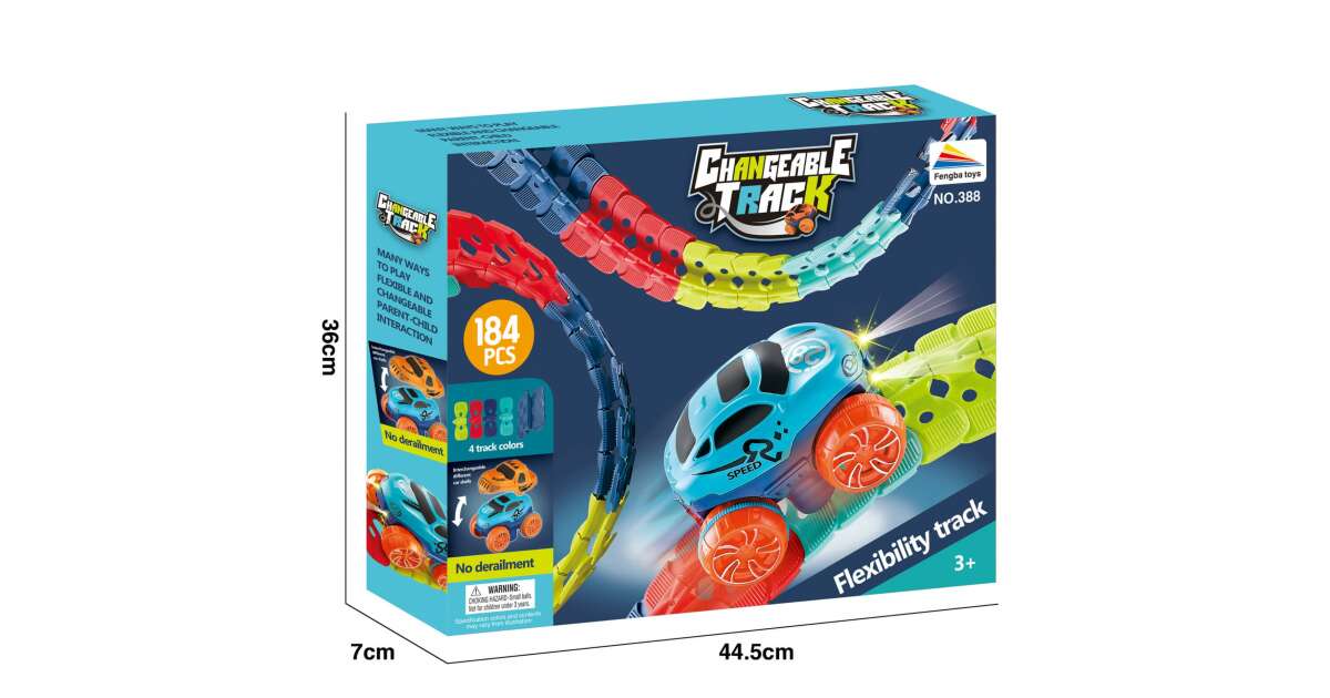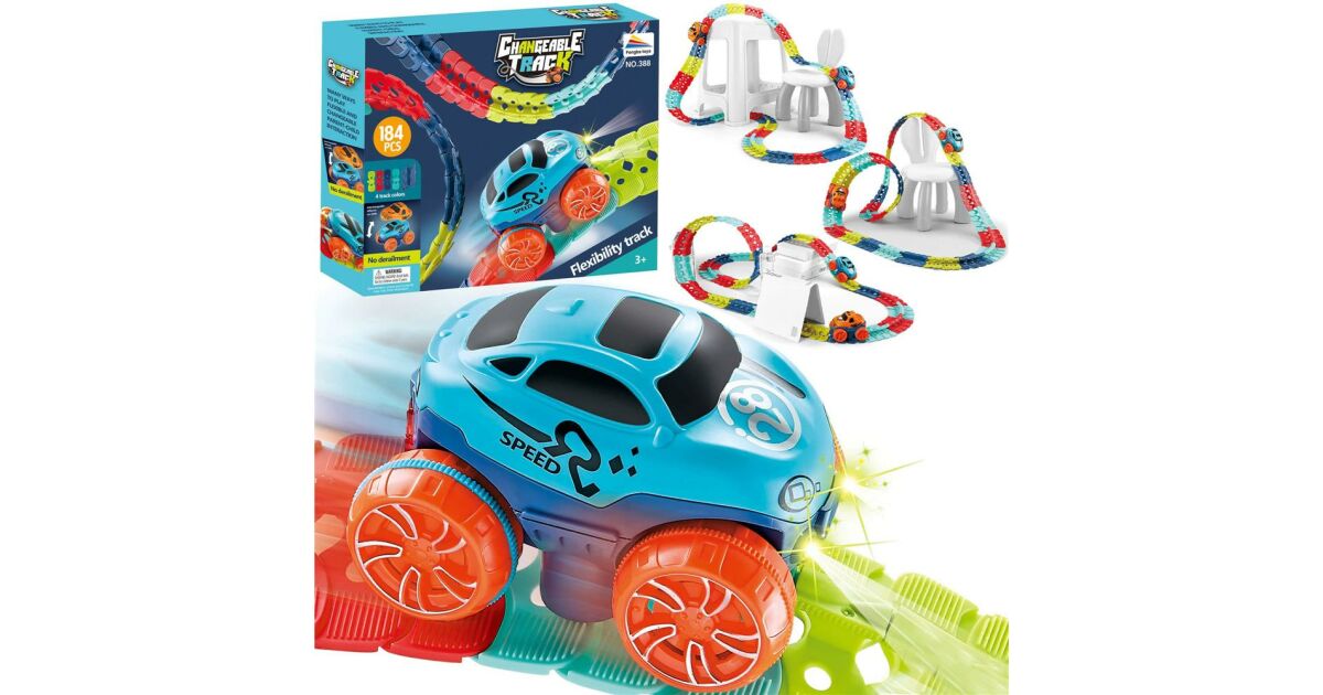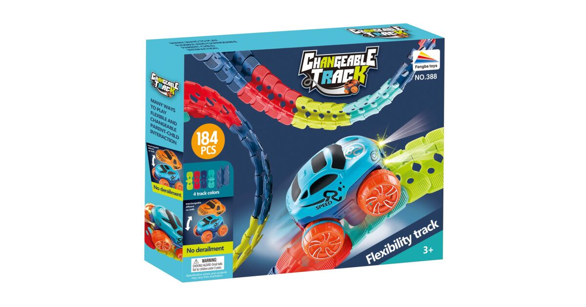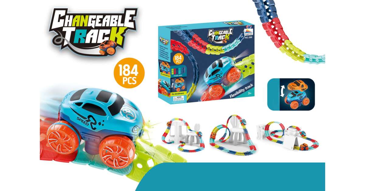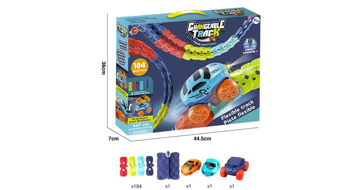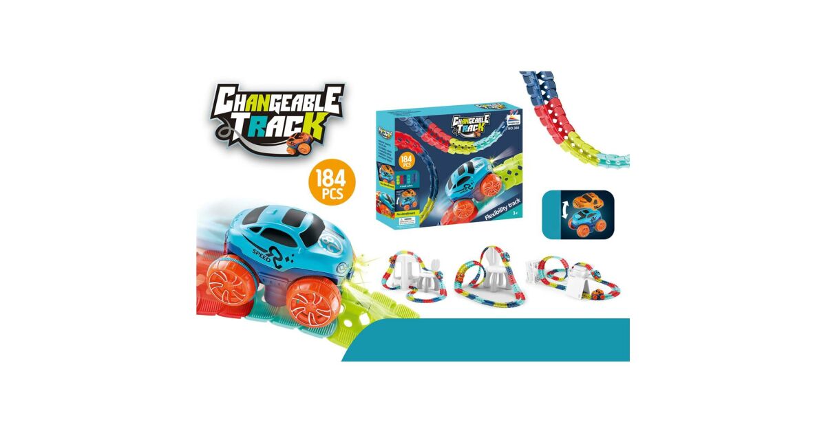 Ez a 184 darabos flexibilis versenyautópálya hajlítható, világít és órákig tartó szórakozást nyújt! A LED lámpák fényesen világítanak, amikor az autó áthalad rajtuk, így még izgalmasabbá téve a játékot. A rugalmas pályát szabadon formázhatod, hajlíthatod, forgathatod és csavarhatod, így mindig új és izgalmas pályákat építhetsz.