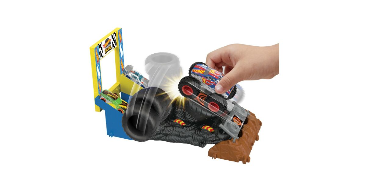 Éld át a Monster Trucks aréna izgalmát ezzel a Hot Wheels játékszettel! Döntsd le a gumitornyot, és légy te az első a célvonalon! Ez a készlet tökéletes a versenyzés és a rombolás szerelmeseinek. 🚗💥