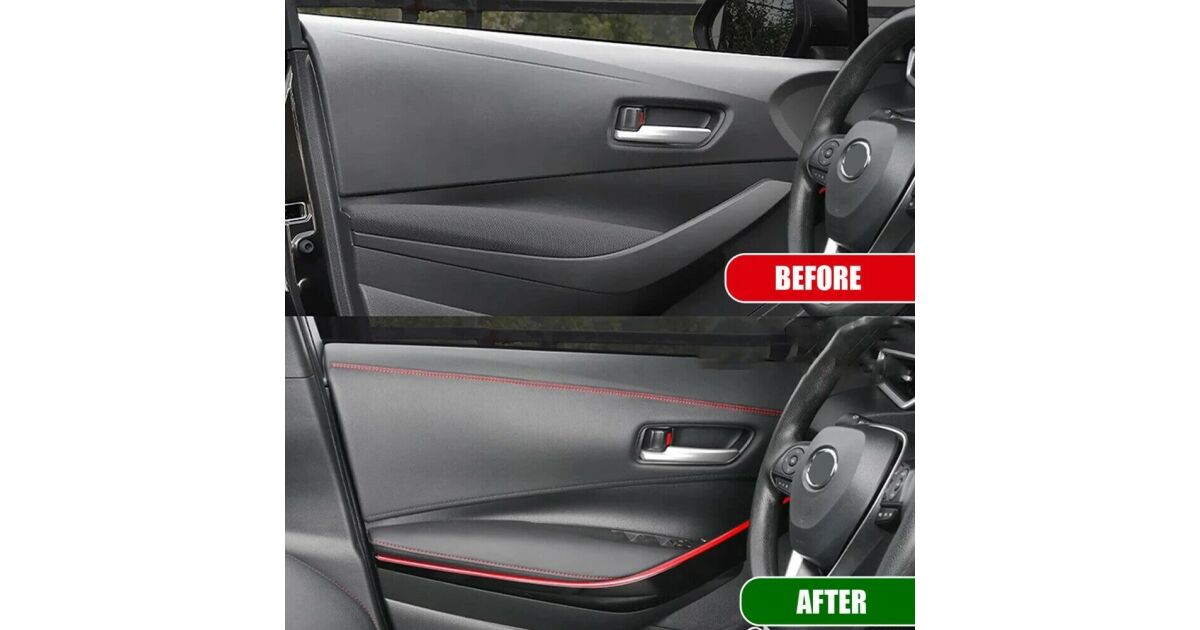 Díszítsd autódat ezzel a stílusos, 2 méter hosszú dekorációs szalaggal! Kiváló minőségű ökobőrből készült, fekete alapszínnel és kontrasztos piros varrással. A gondos kidolgozás elegáns megjelenést kölcsönöz járműved belsejének.