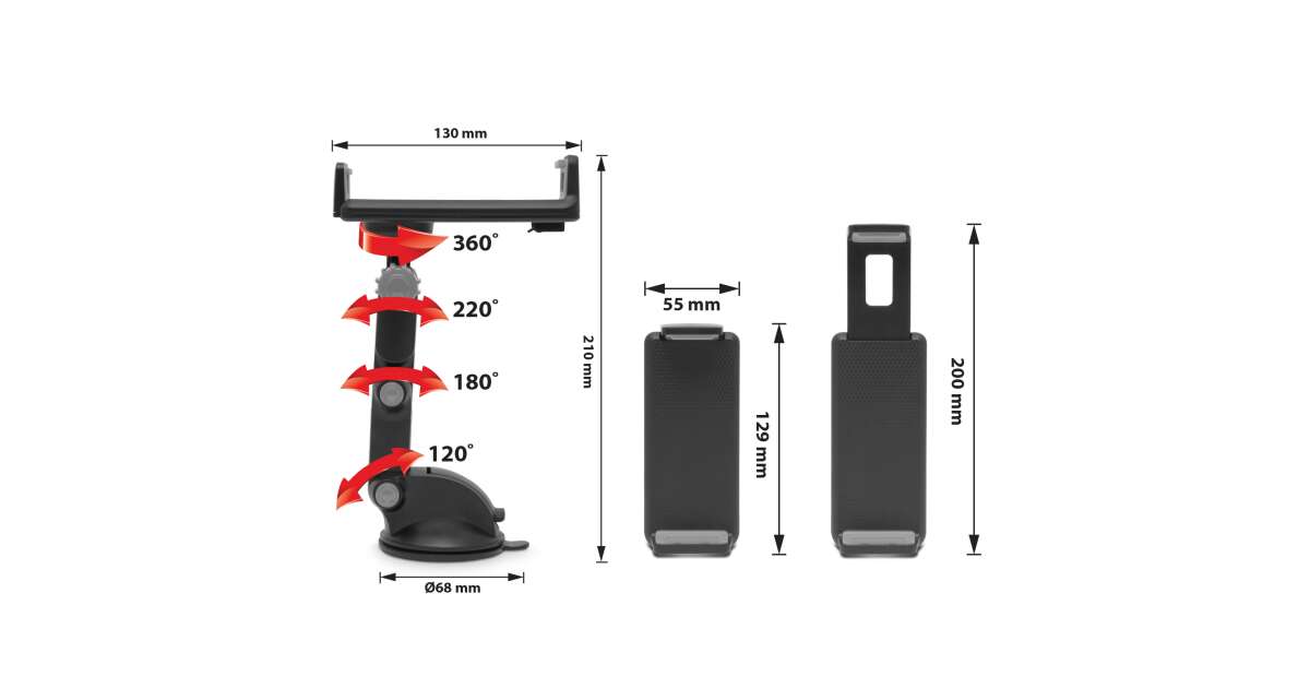 Ez az univerzális autós telefontartó tökéletes megoldás okostelefonod, GPS-ed vagy tableted biztonságos és kényelmes elhelyezésére az autóban. A 360°-ban forgatható fejrésznek és a 3 pontban állítható tartókarnak köszönhetően mindig a tökéletes látószöget biztosíthatod.