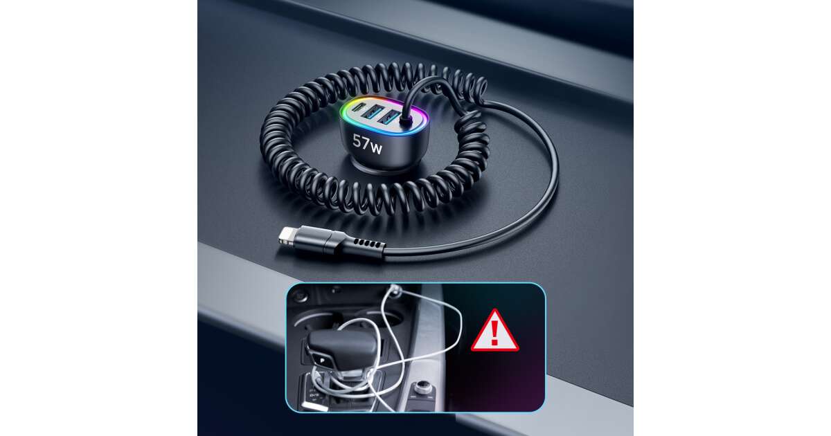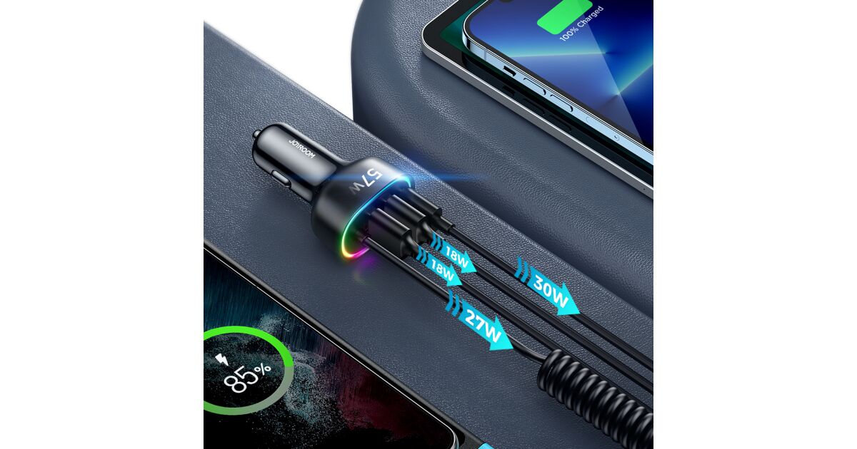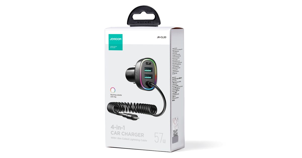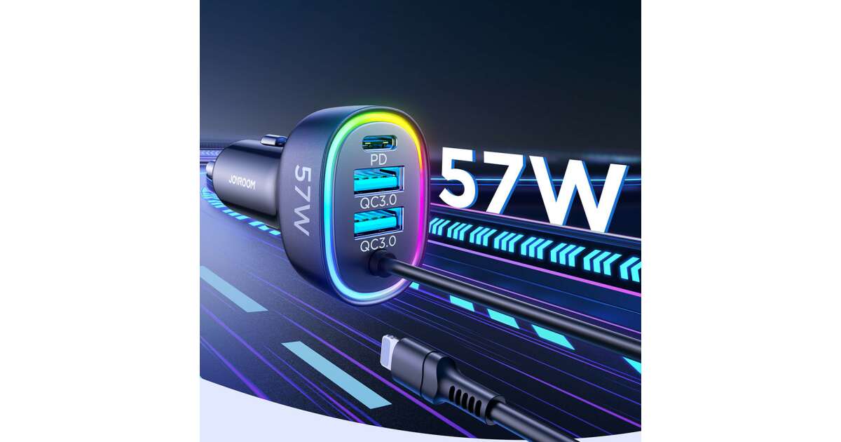 Ez a Joyroom JR-CL20 autós töltő a tökéletes megoldás, ha egyszerre több eszközt szeretnél tölteni az autódban. 57W maximális teljesítményével és beépített Lightning kábelével gyors és hatékony töltést biztosít.