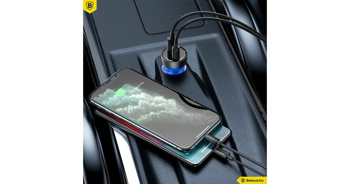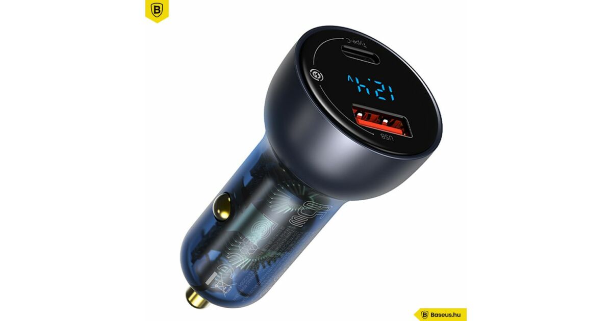 Ez a Baseus autós töltő egyszerre két eszközt is képes feltölteni, a legújabb gyors töltési technológiával. USB és USB-C portokkal rendelkezik, így kompatibilis a legtöbb okostelefonnal és laptoppal. A beépített intelligens kijelző folyamatosan mutatja a feszültséget, így mindig kézben tarthatod a töltési folyamatot.