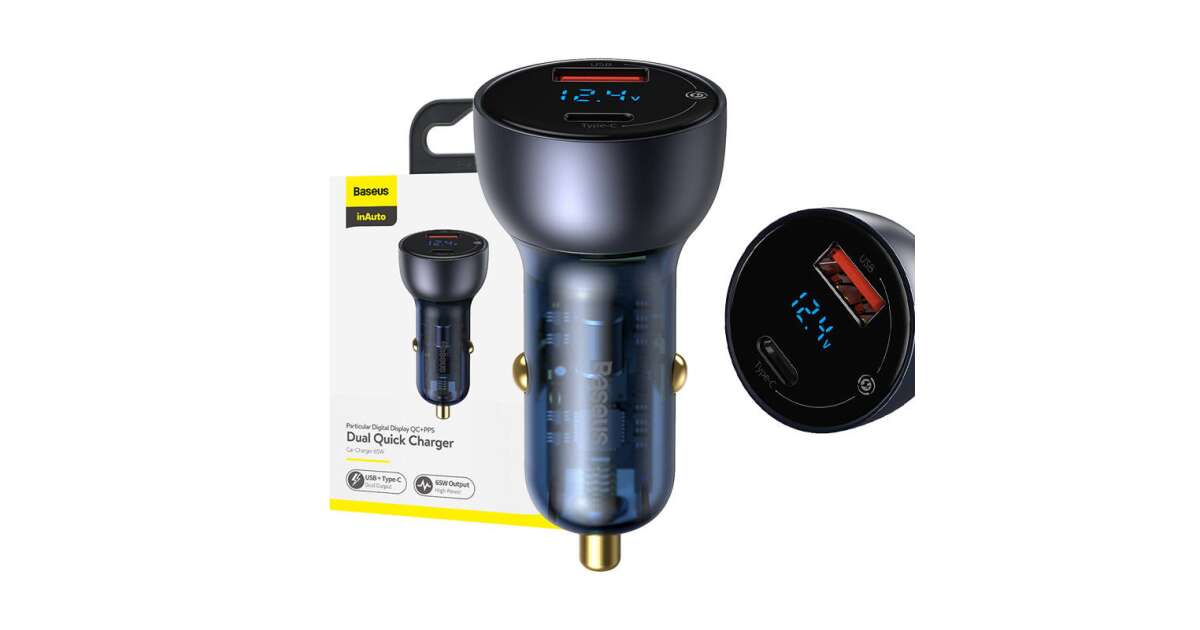 Baseus Particular Digital Display autós töltő kijelzővel, USB + USB-C, QC3.0 + PD, 5A, 65W, szürke (CCKX-C0G) vásárlás: