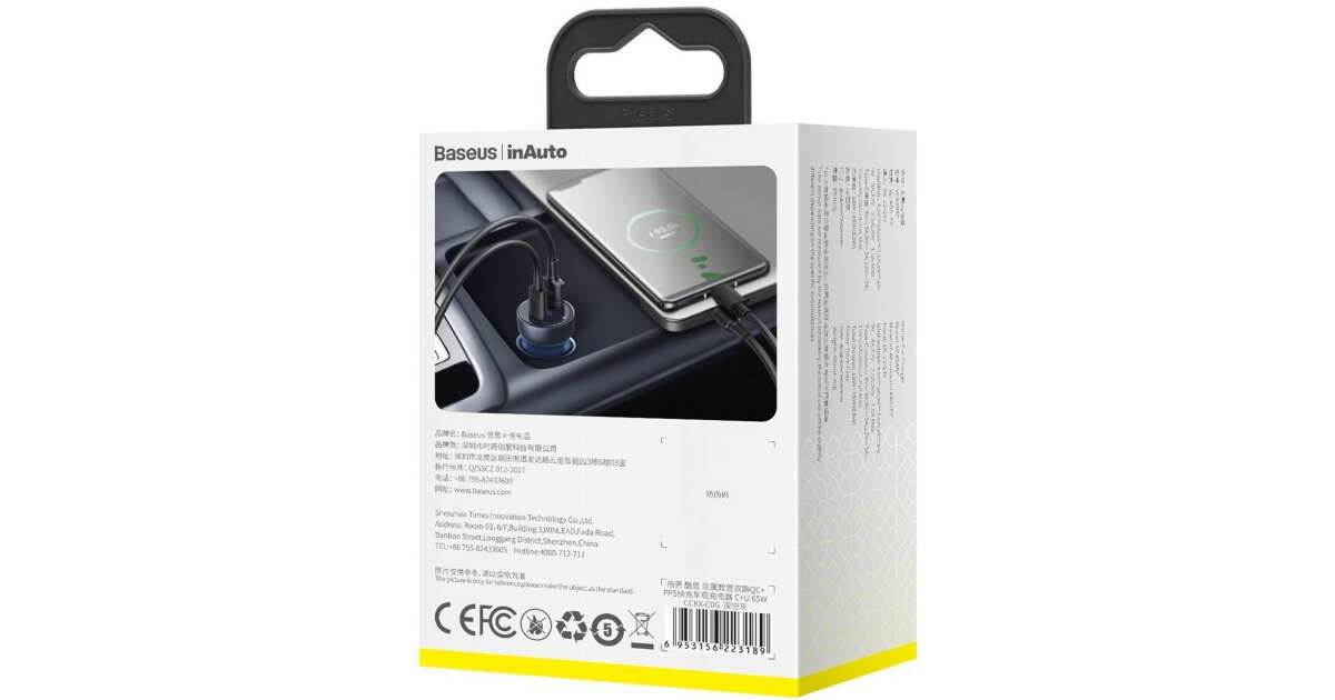 Baseus 65W Autós Töltő: Kétportos, Gyors Töltési Technológia ⚡