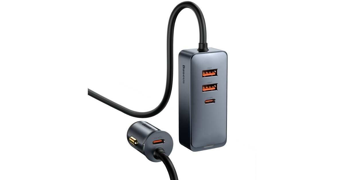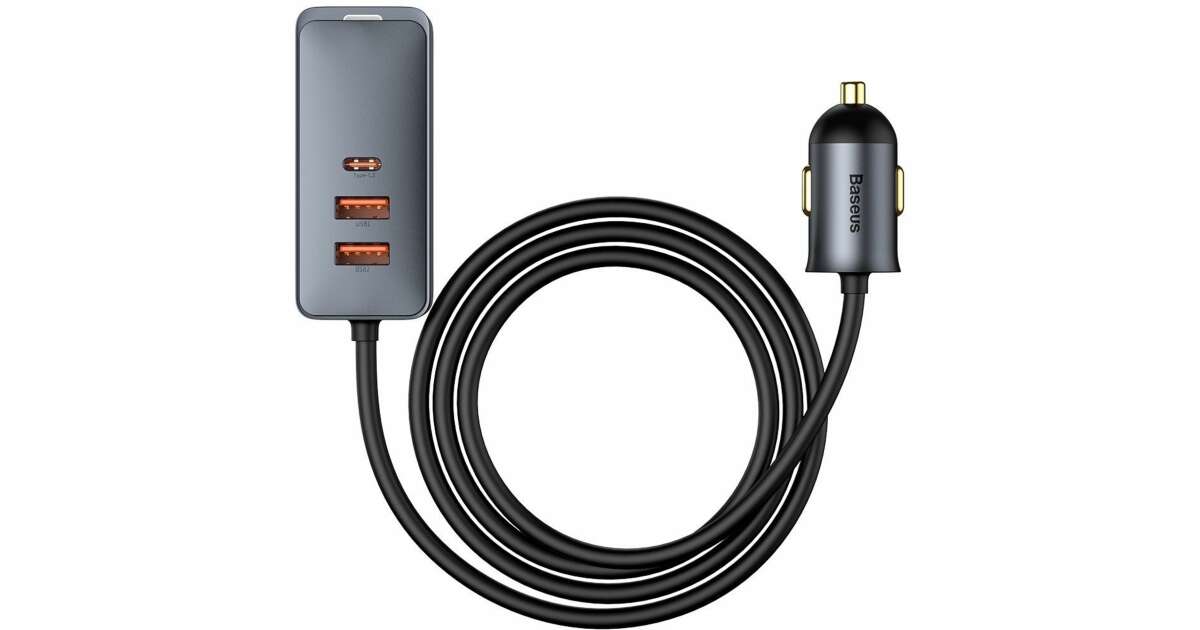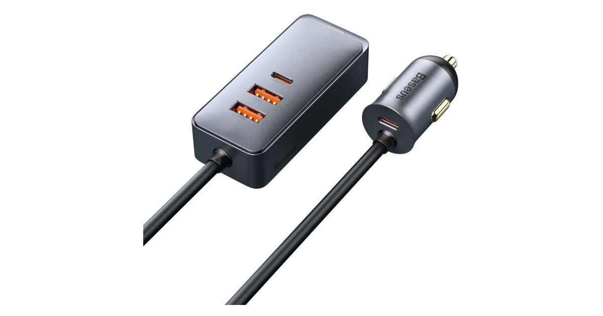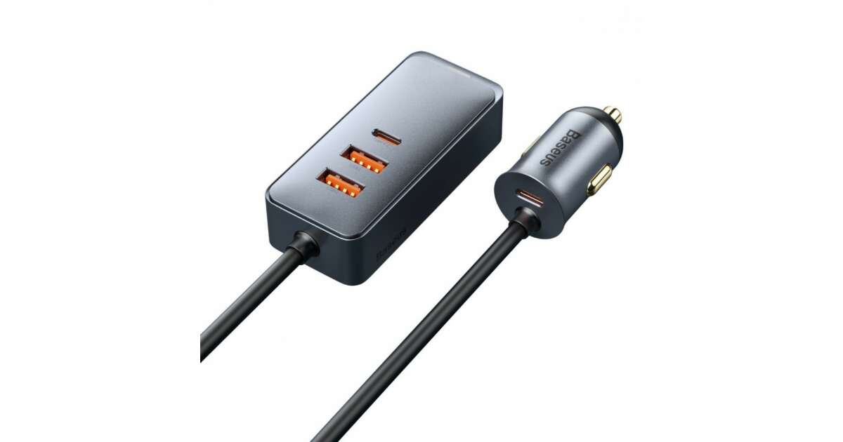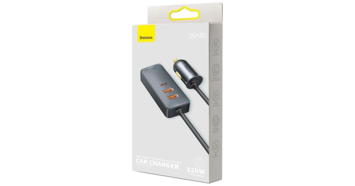 Baseus CCBT-A0G Share Together autós töltő hosszabbító kábellel 2xUSB + 2xUSB-C 120W #szürke vásárlás: