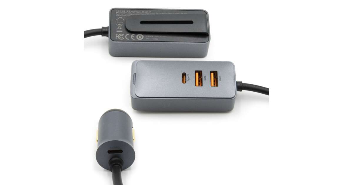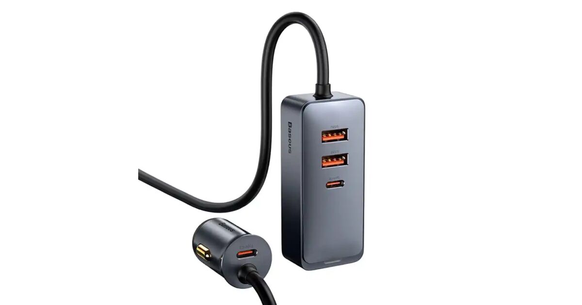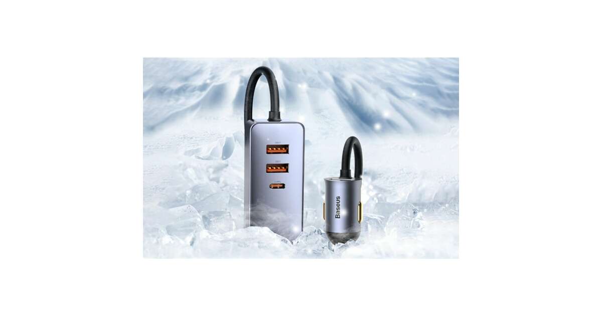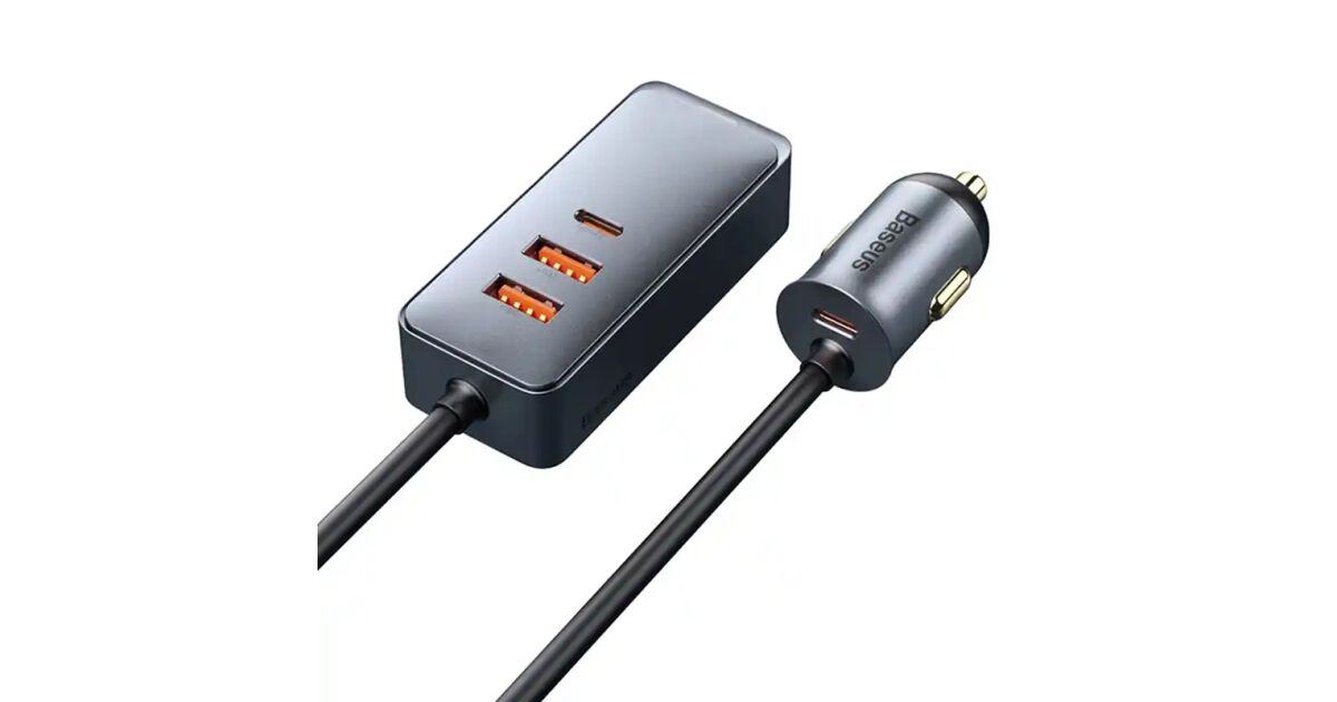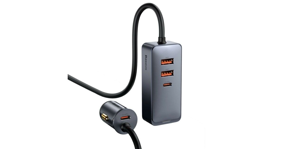 Baseus CCBT-A0G Share Together autós töltő hosszabbító kábellel 2xUSB + 2xUSB-C 120W #szürke vásárlás: