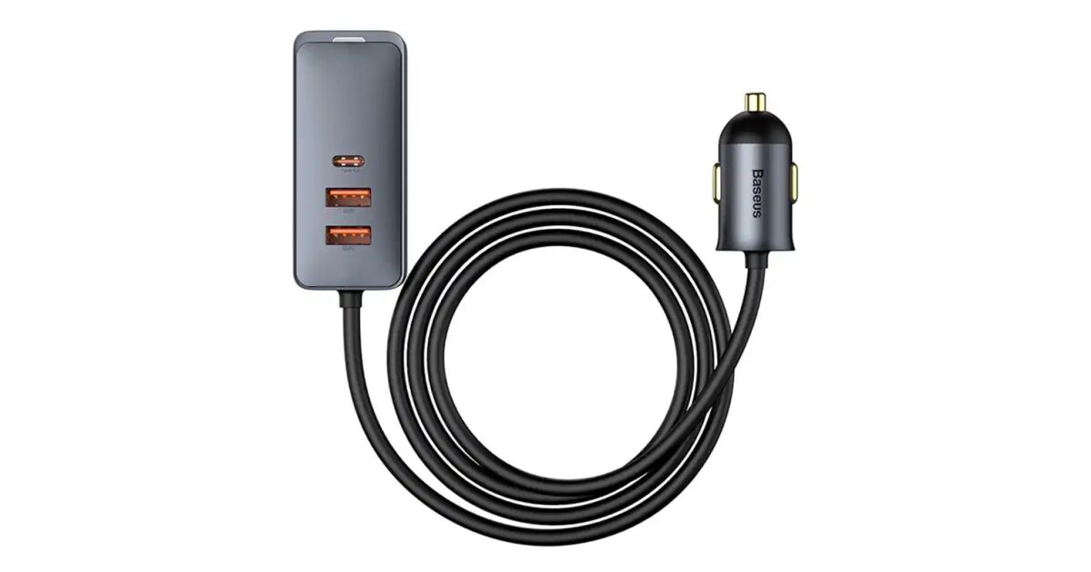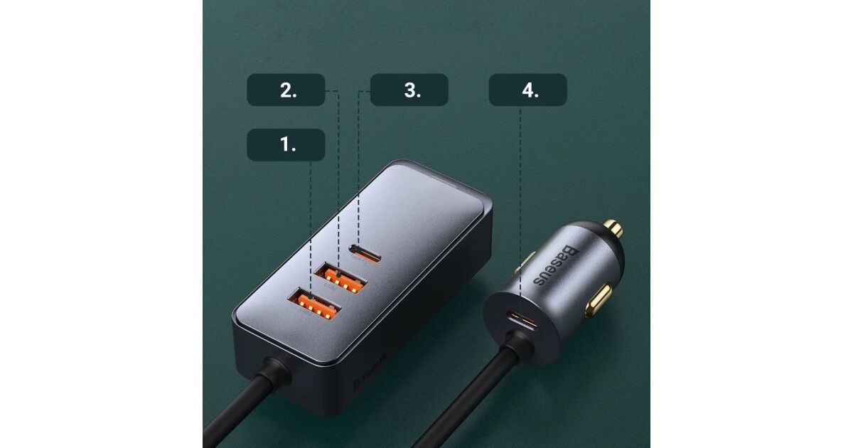 Baseus CCBT-A0G Share Together autós töltő hosszabbító kábellel 2xUSB + 2xUSB-C 120W #szürke leírása