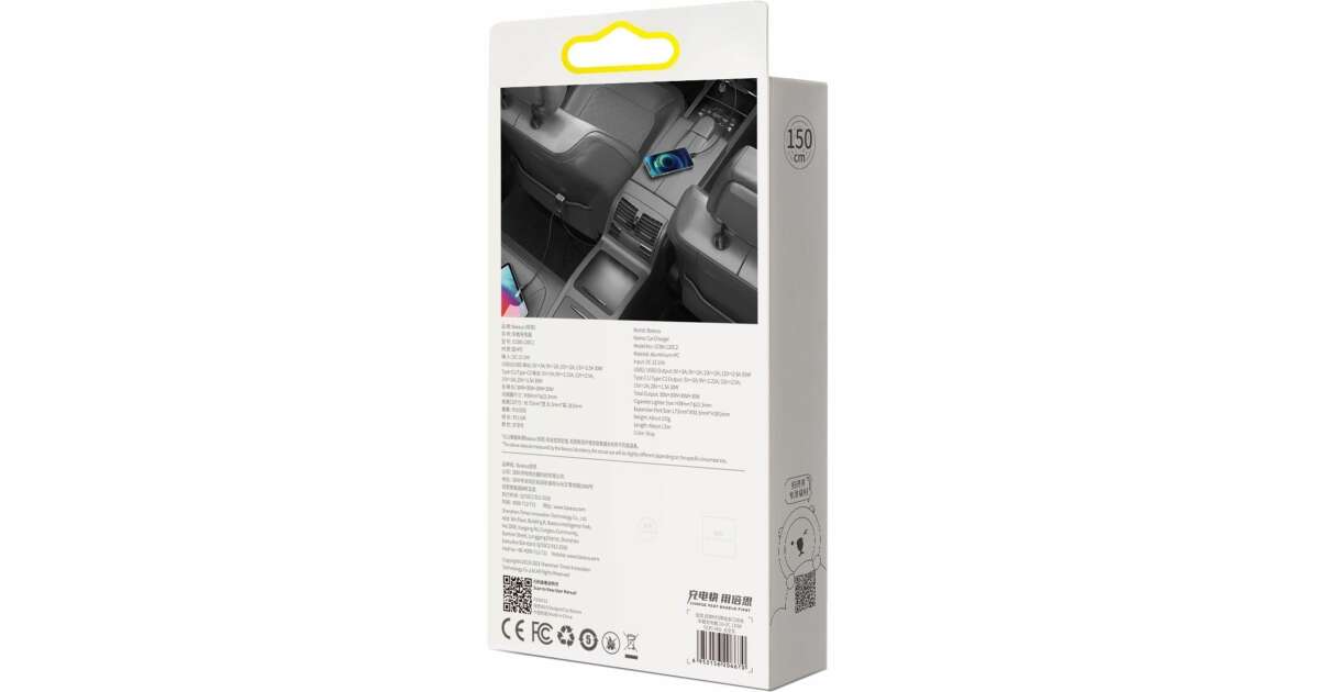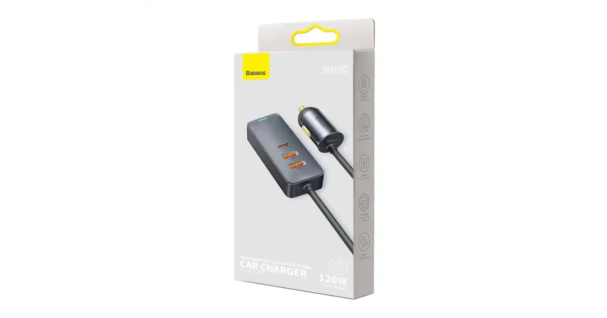 Ez a Baseus autós töltő egyszerre akár 4 eszközt is képes gyorsan tölteni, összesen 120W teljesítménnyel. A 1,5 méteres hosszabbító kábelnek köszönhetően a hátsó üléseken ülők is kényelmesen tölthetik eszközeiket. Robusztus és tartós kivitel, megbízható védelmet nyújt a csatlakoztatott eszközök számára. 12V-24V-os járművekhez kompatibilis.