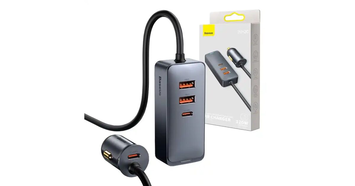 Baseus Share Together 120W autós töltő: 4 eszköz egyidejű gyorstöltése 🚗💨