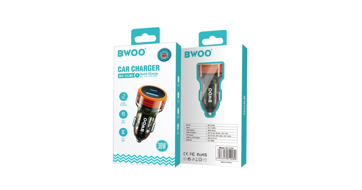 Ezt a terméket így is ismerheted: BWOO BO-CC85 autós töltő 1xUSB-A és 1xUSB-C csatlakozással 38W