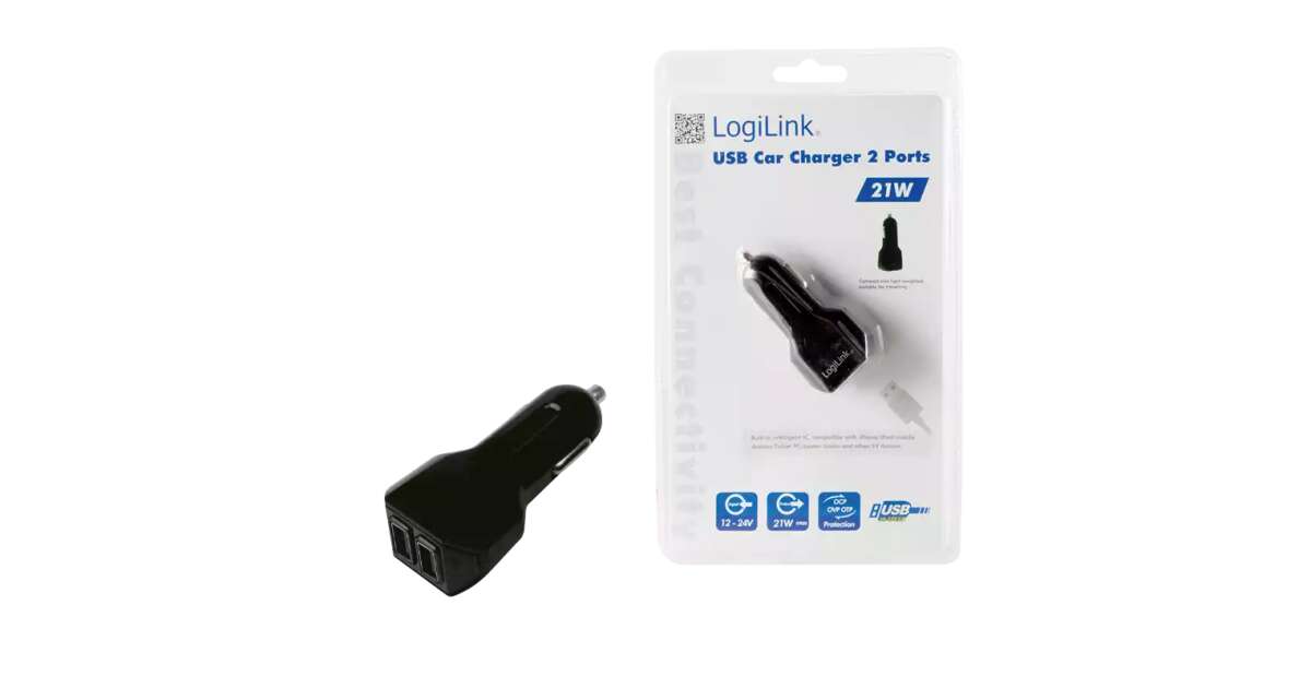 LogiLink Autós USB Töltő: 2 Port, 21W - Gyors és Biztonságos Töltést biztosít 🚗⚡