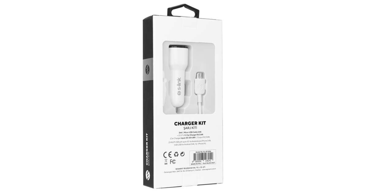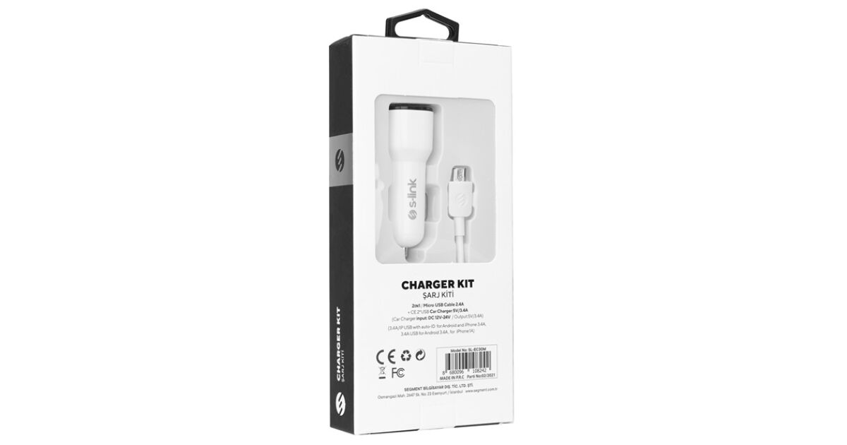 S-Link Autós töltő - SL-EC30M (2db USB, 5V/2.4A/3,4A, 17W, Micro usb, 100cm adat+töltőkábel, fehér) leírása