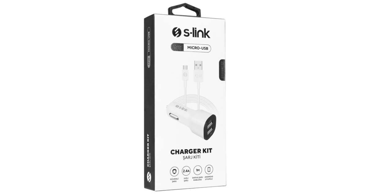 S-Link Autós töltő - SL-EC30M (2db USB, 5V/2.4A/3,4A, 17W, Micro usb, 100cm adat+töltőkábel, fehér)