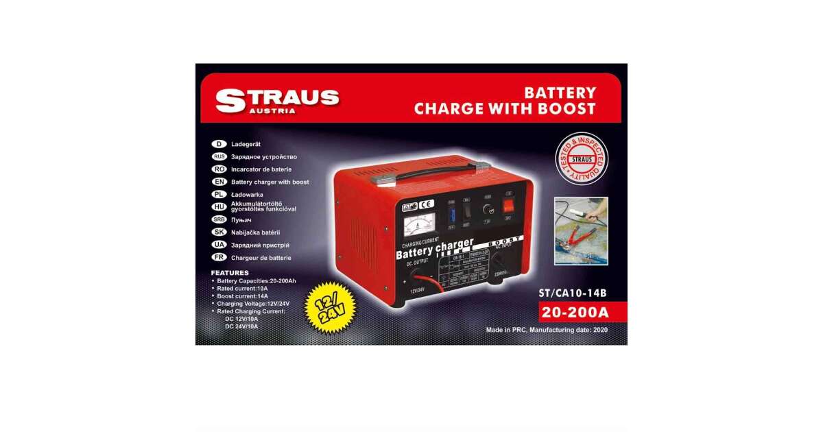 Straus akkumulátor töltő gyorstöltés funkcióval 12v-24v 30A prémium töltő ST/CA10-14B Mondjon búcsút a lemerült akkumulátornak