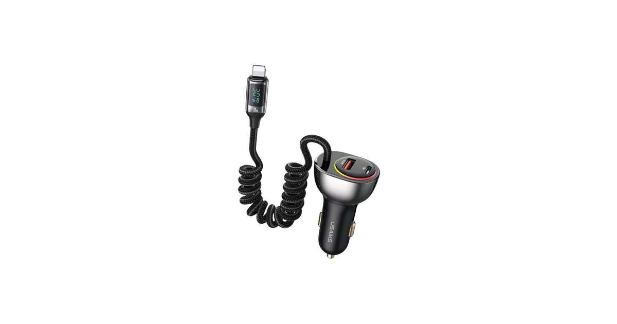 USAMS C37 Autós Töltő - 60W USB+USB-C, Lightning Kábellel leírása