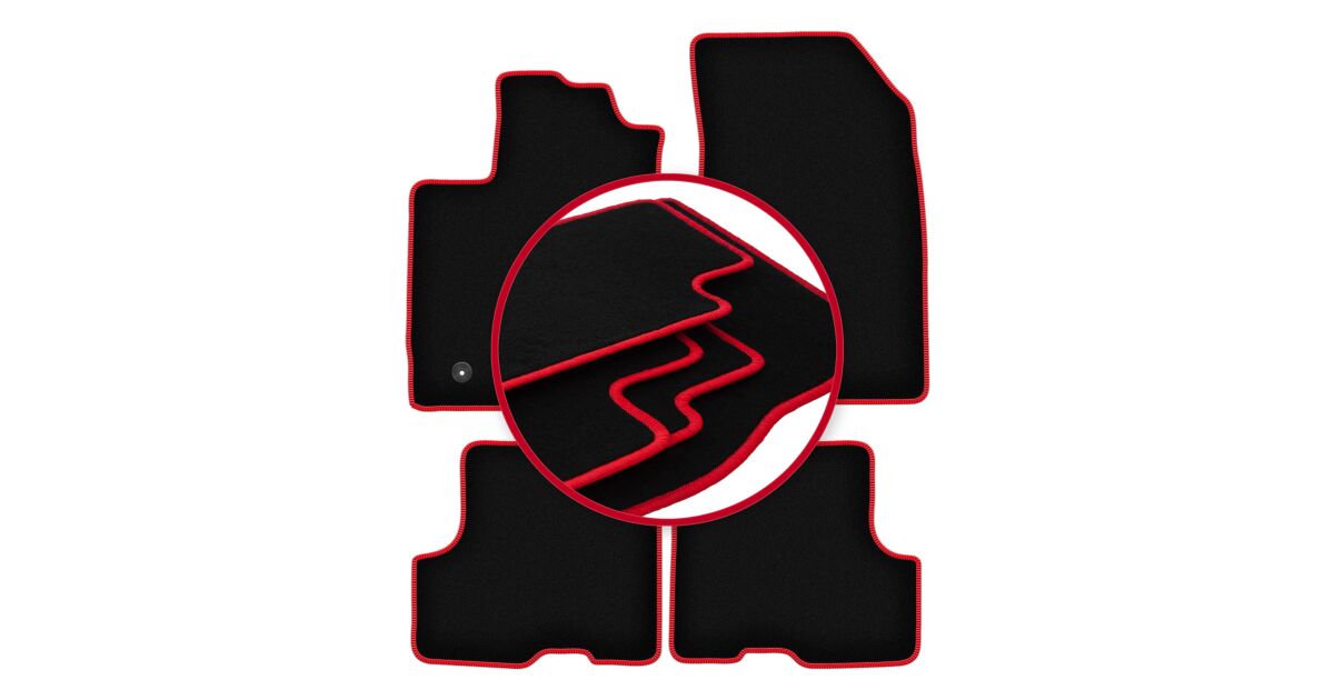 Piros szegélyű velúr szőnyegek a következő modellekhez: Dacia Duster II 2WD SUV (2018-) leírása