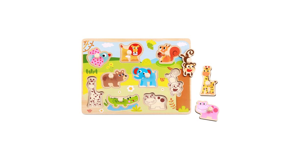 Ezt a terméket így is ismerheted: Tooky Toys Fa Puzzle fogantyús 10db-os - Safari állatok
