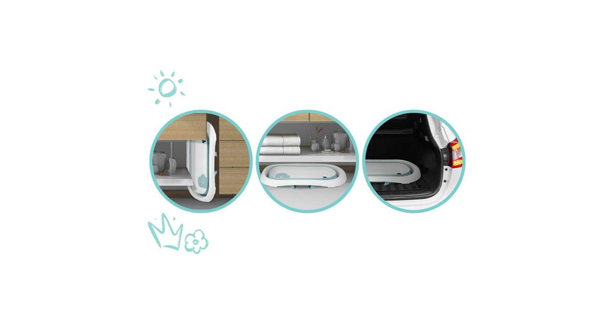 A kád könnyen és gyorsan összecsukható, így helytakarékosan tárolható, és könnyen magával vihető utazáskor is.
