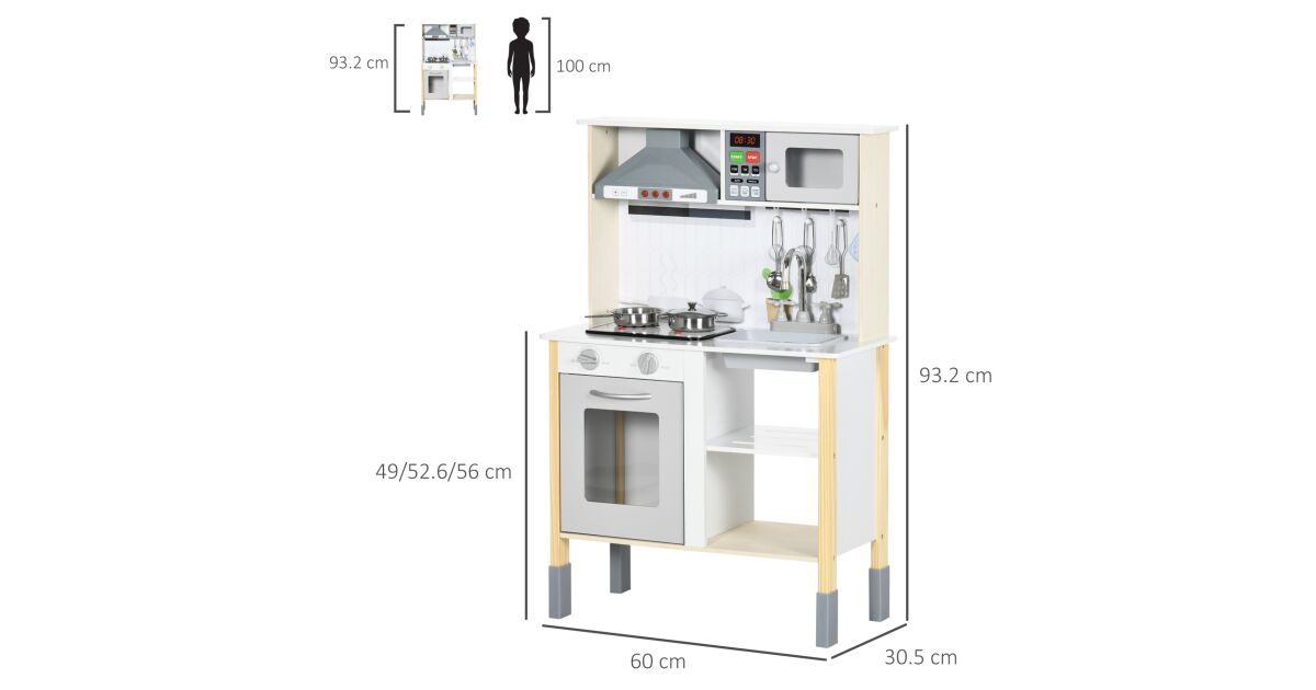 - Állítható magasság: A konyha magassága 49 cm, 52,6 cm és 56 cm között állítható, így a gyermek növekedéséhez igazítható. 📏