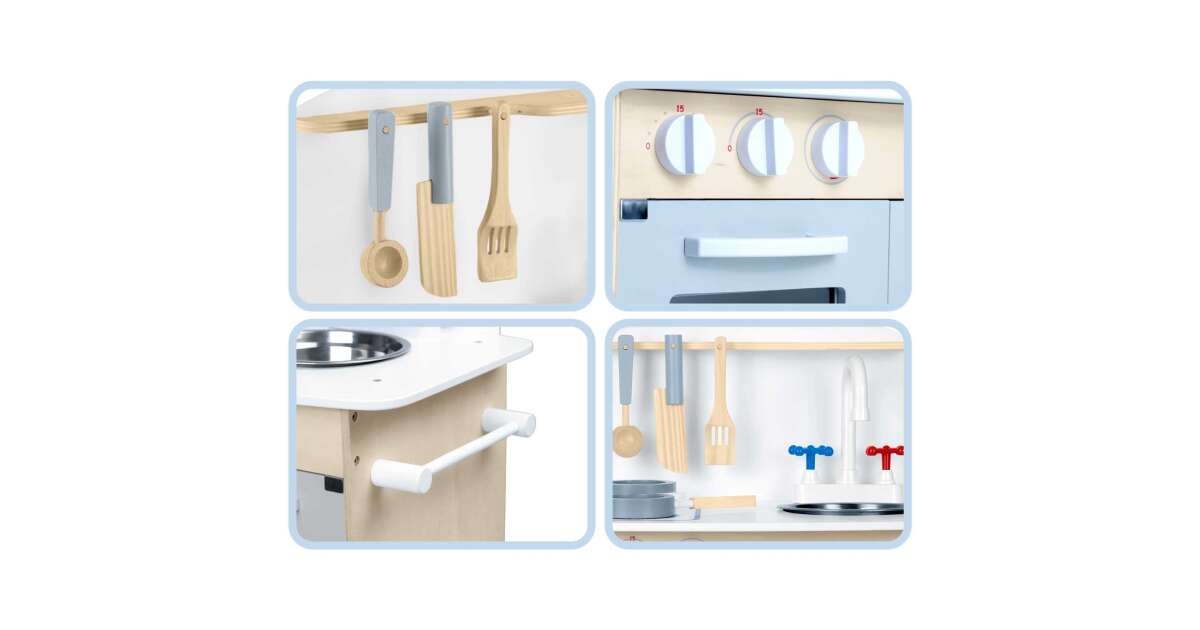Ez a gyönyörű, tömör fából készült Ricokids konyha tökéletes ajándék minden kislánynak és kisfiúnak, akik imádják utánozni a felnőtteket a konyhában. A számos interaktív elem órákig tartó szórakozást és értékes fejlődési lehetőségeket kínál.