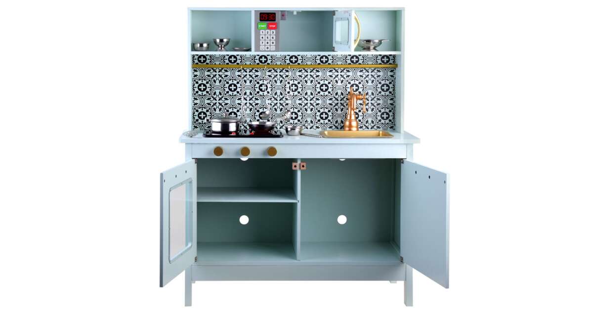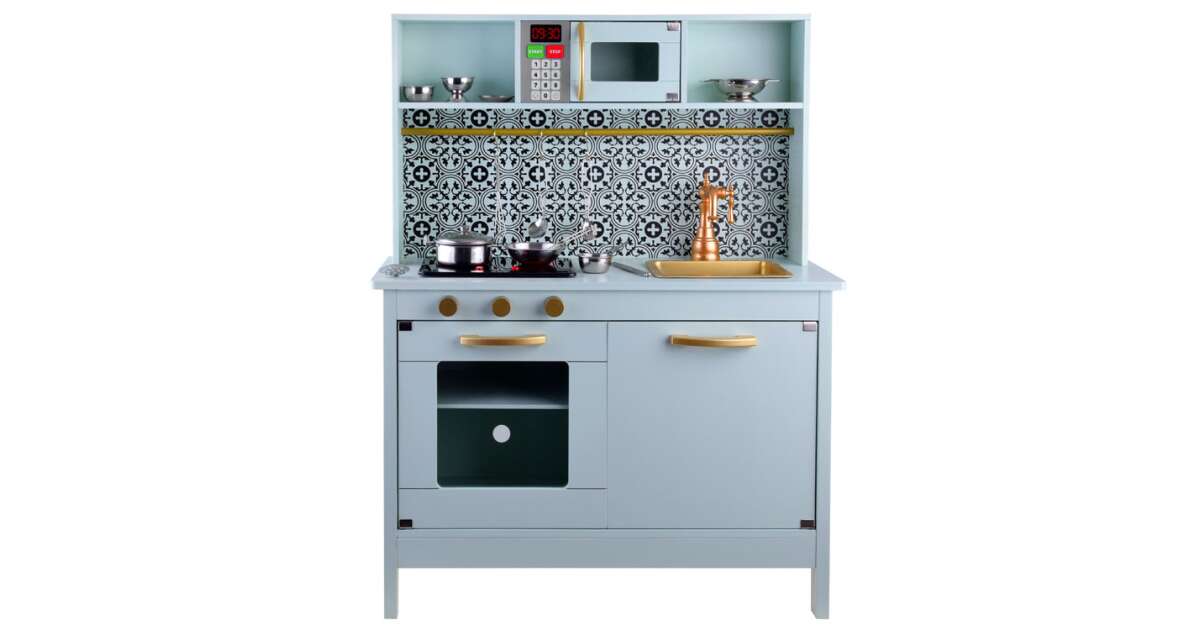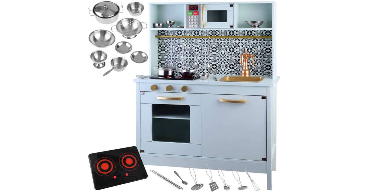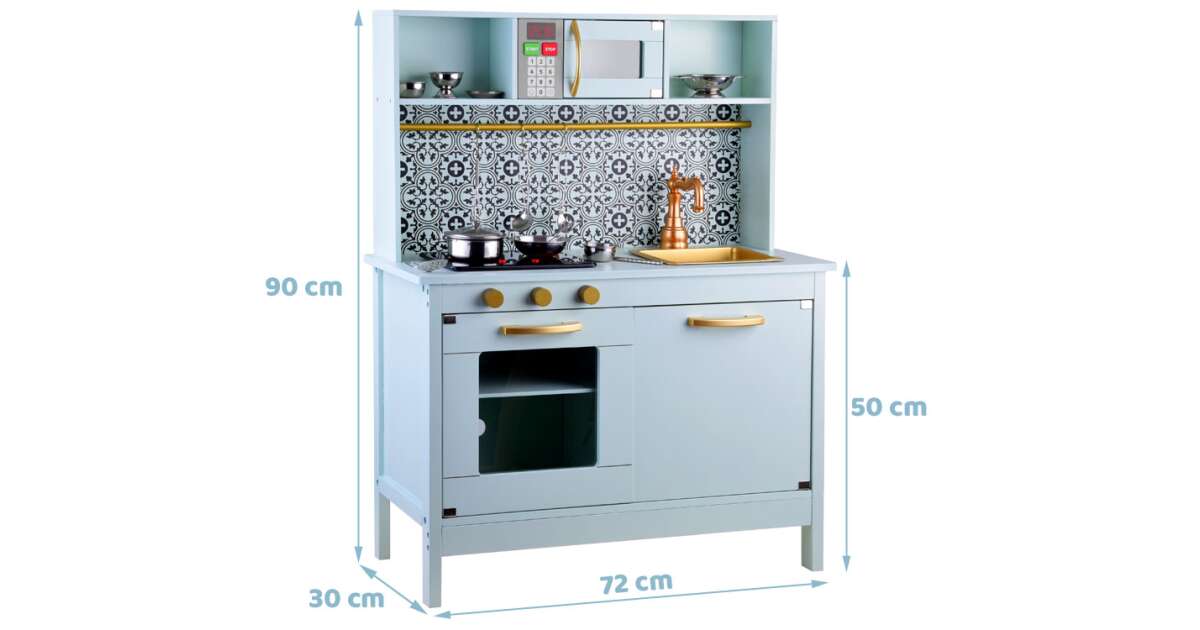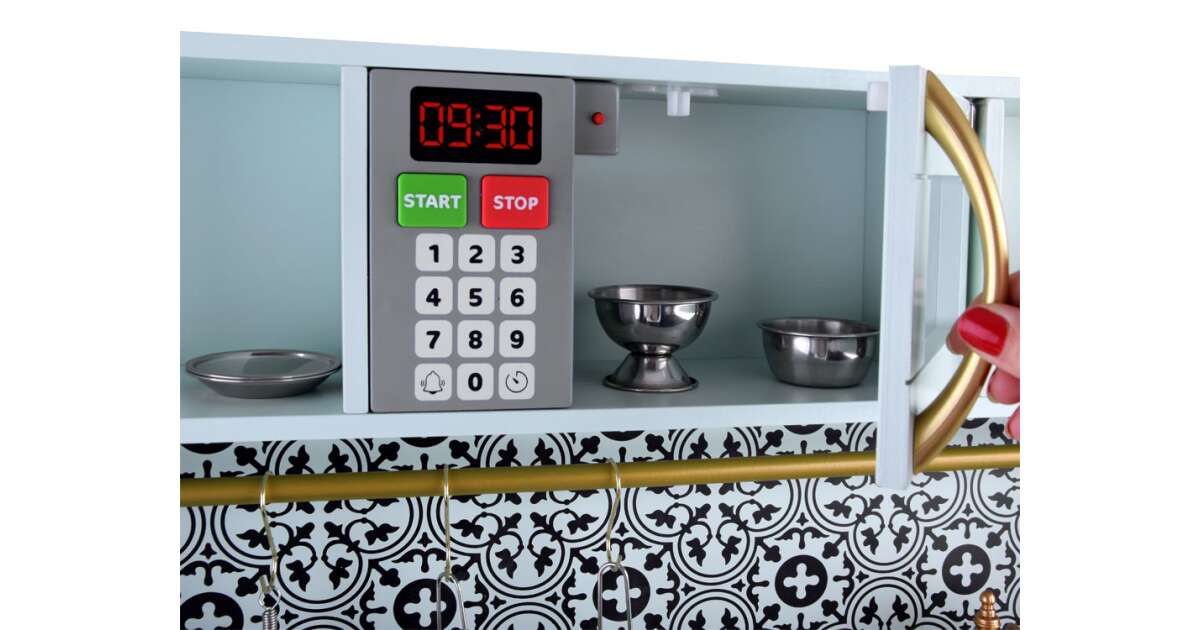 Ez a gyönyörű, menta színű fa gyerekkonyha tökéletes hely a kis szakácsoknak, hogy kibontakoztassák kreativitásukat és szórakoztató módon tanuljanak! A konyha valósághű hang- és fényeffektusokkal rendelkezik, így még izgalmasabb a játék.