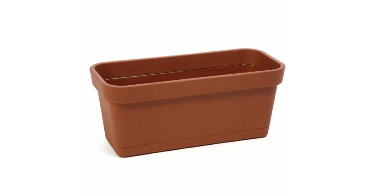 Ezt a terméket így is ismerheted: Téglavörös műanyag erkélyláda virágcserép 40x17cm lobelia csészével