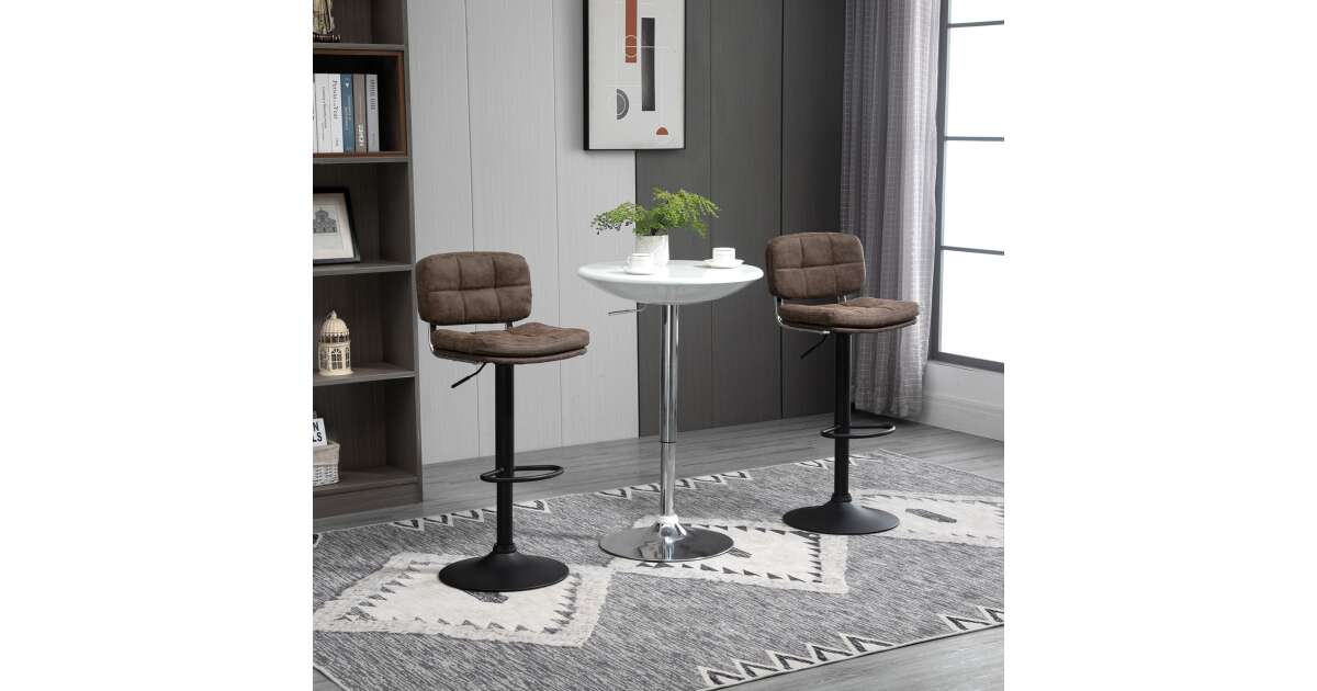 2 db bárszék készlet, Homcom, fém/ökológiai bőr, állítható magasság, 41,5 x 45 x 85/107 cm, fekete/barna